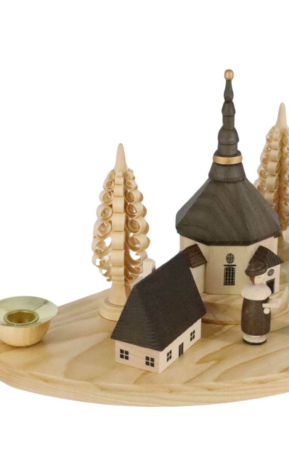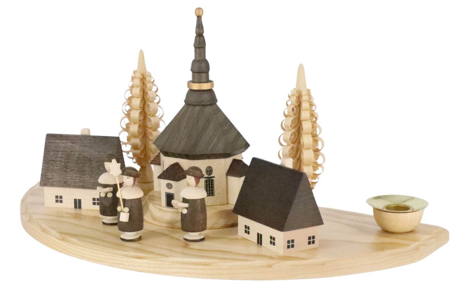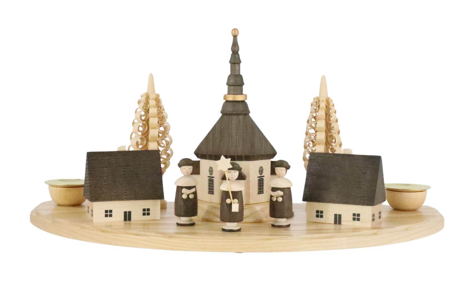 Kerzenhalter mit Seiffener Dorf und Kurrende, natur, 30 cm von Albin Preißler aus Seiffen im Erzgebirge