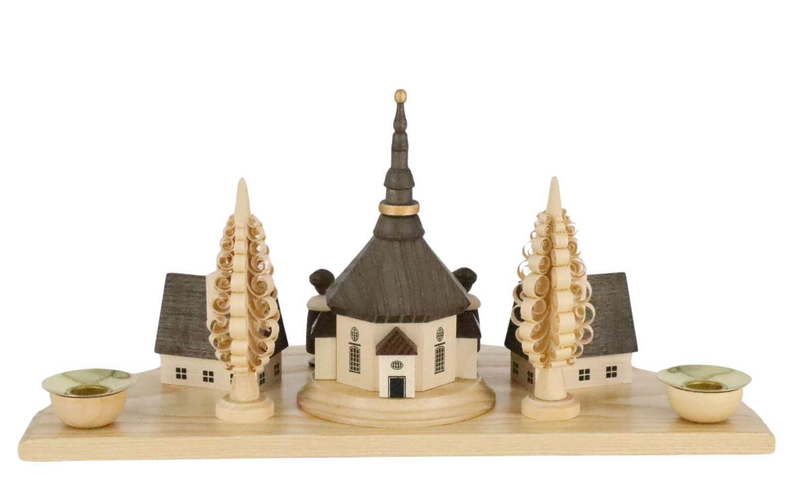Kerzenhalter mit Seiffener Dorf und Kurrende, natur, 30 cm von Albin Preißler