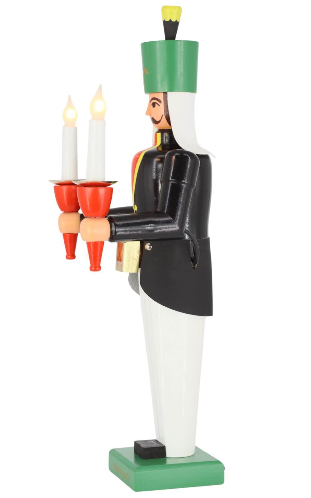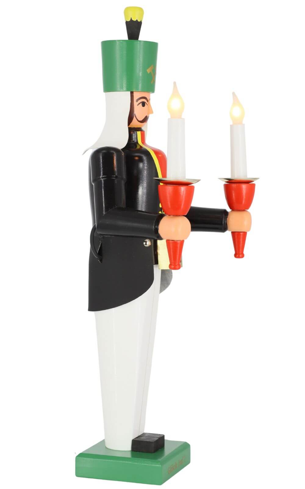 Ausgestattet mit einer beleuchteten Bauchlampe (12 V, 1,5 W) und zwei Riffelkerzen (12 V, 3 W, E10) bringt dieser Bergmann nicht nur Licht in die dunkle Jahreszeit, sondern auch eine warme und einladende Stimmung in Ihr Zuhause. Der separate Trafo und die 0,8 m lange Anschlussleitung sorgen für eine einfache und sichere Handhabung.