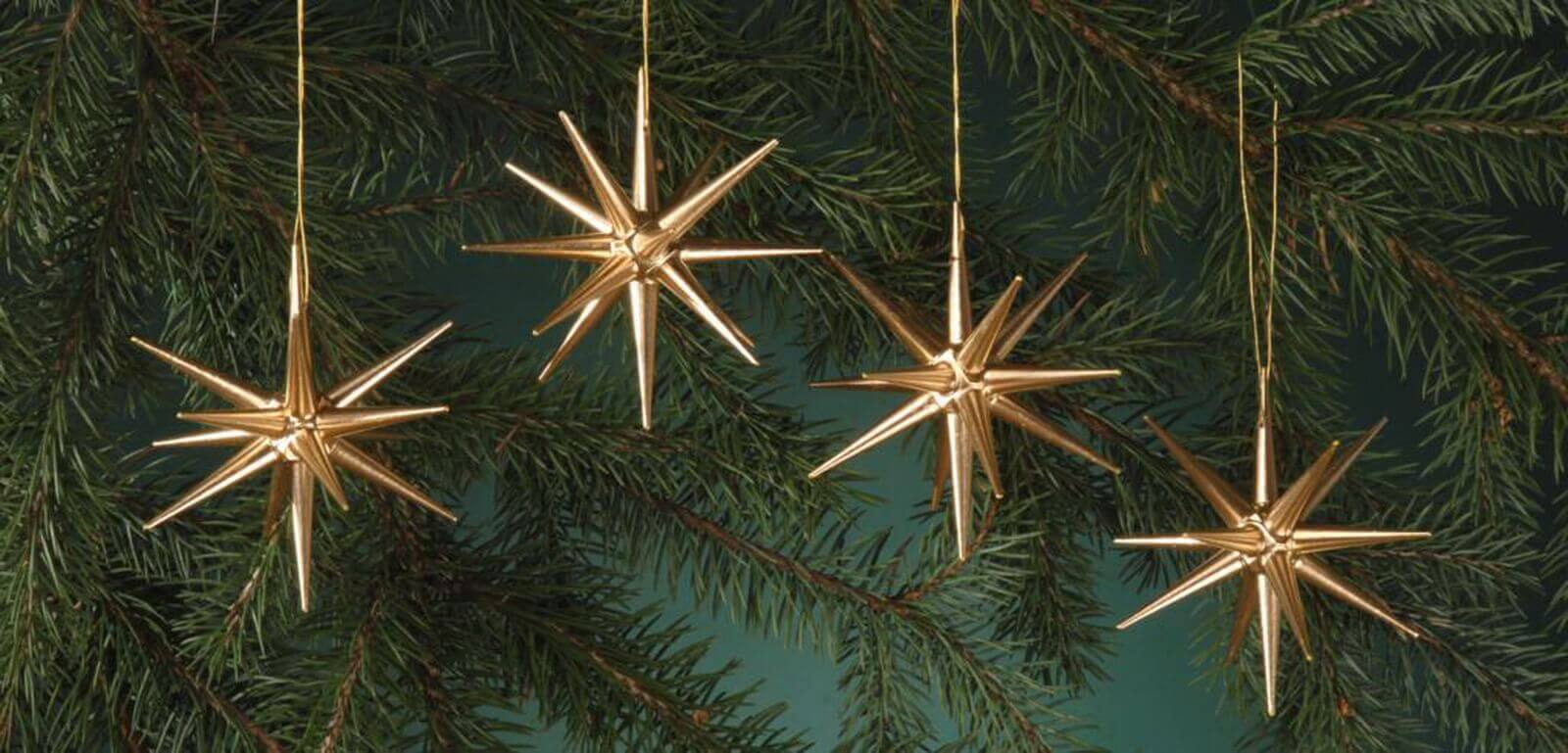 Christbaumschmuck aus Holz, Weihnachtssterne gold, 4-teilig von Albin Preißler
