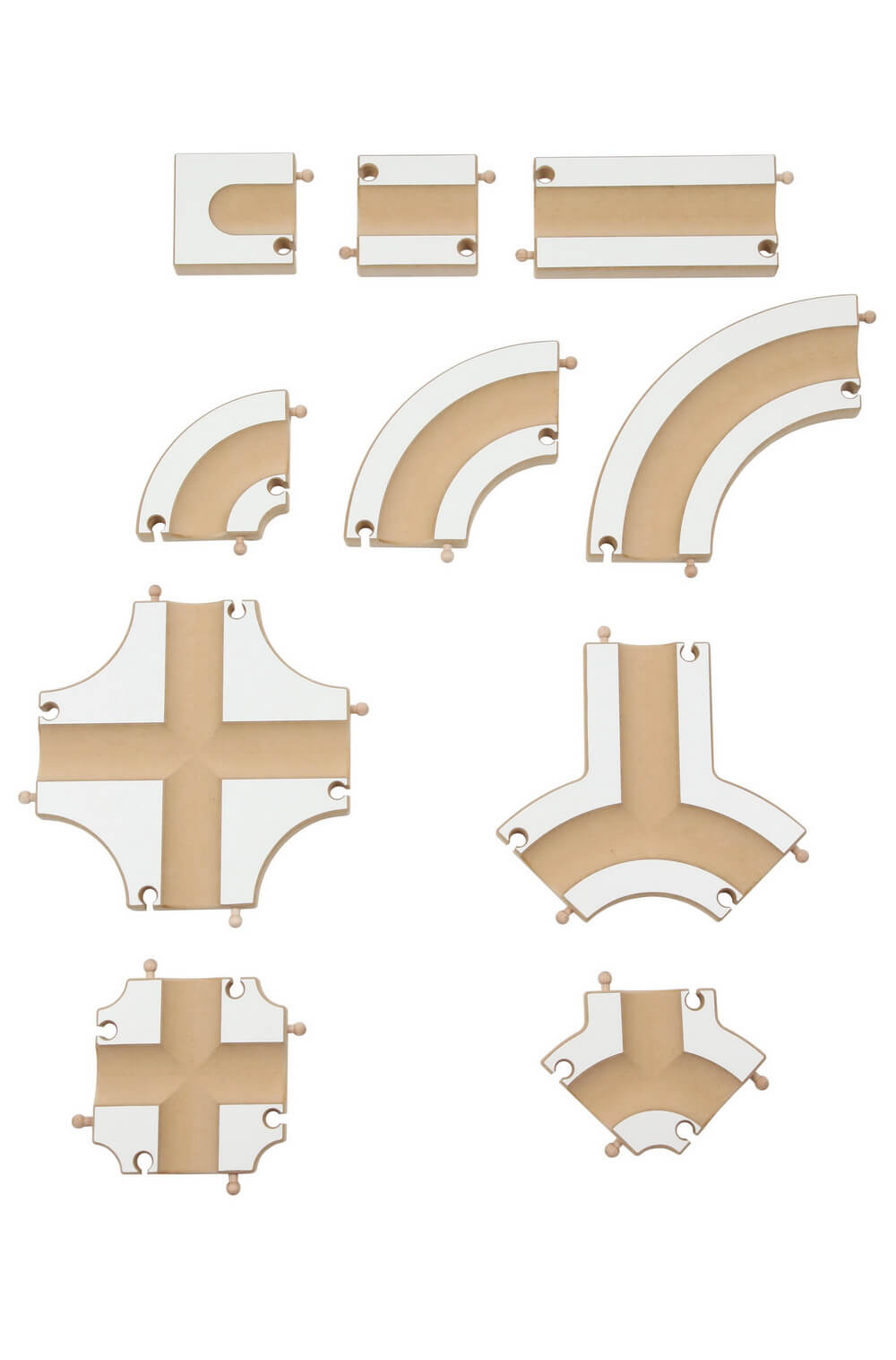 While the child concentrates on assembling, fine motor skills, eye-hand coordination and sensory skills are trained along the way. The trick is, to keep the ball skillfully on the track. Here the child learns to assess speed and movement and use them in a targeted manner. Whether slow or fast, whether stopped or pushed again - each time a new play experience.