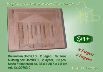 Building Set Domizil 3, 2-Layer with 82 Blocks, Natural by Ebert GmbH from Olbernhau in the Erzgebirge