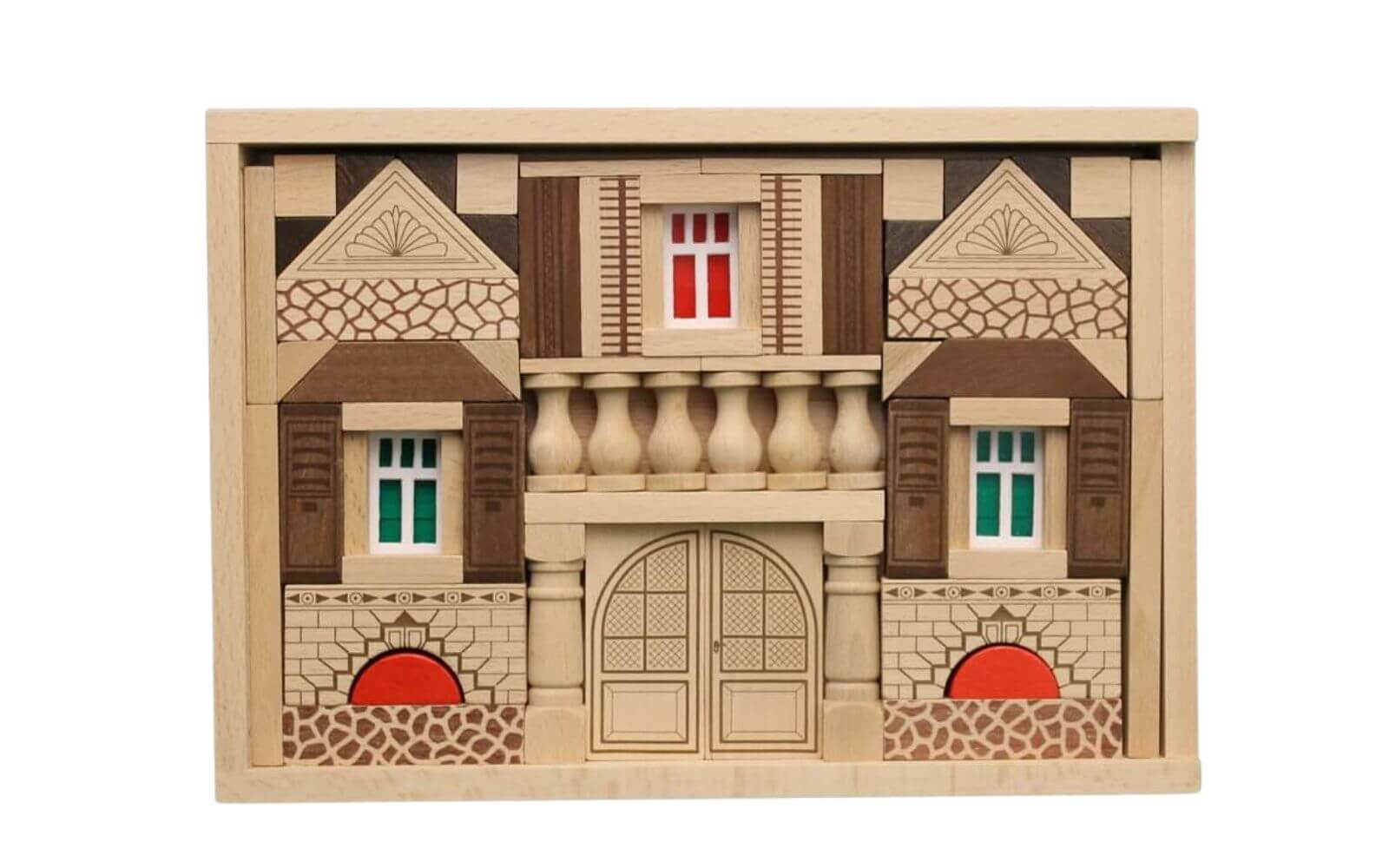 Crafted from local beech wood, the Residence Building Block Set is characterized by its durability and longevity. Each block is meticulously handcrafted, highlighting the high quality and precision of this toy. The blocks are painted with water-based, solvent-free paints and comply with the strict EN 71 toy safety standard, ensuring the highest level of safety.