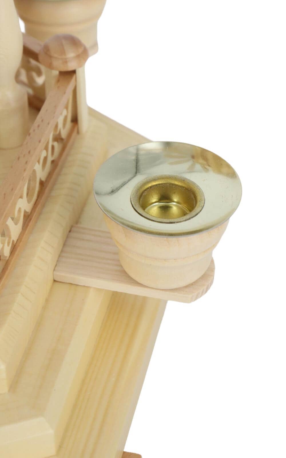 Handcrafted in Seiffen, Germany, by Müller Kleinkunst, this Christmas pyramid stands for precision turning, clean edges, and flawless assembly. Locally sourced woods are carefully selected, finely sanded, and smooth to the touch. The axis runs smoothly, the fan wheel sits securely, and the metal candle holders protect the wooden base. The result is a piece of woodcraft that will accompany many festive seasons to come.