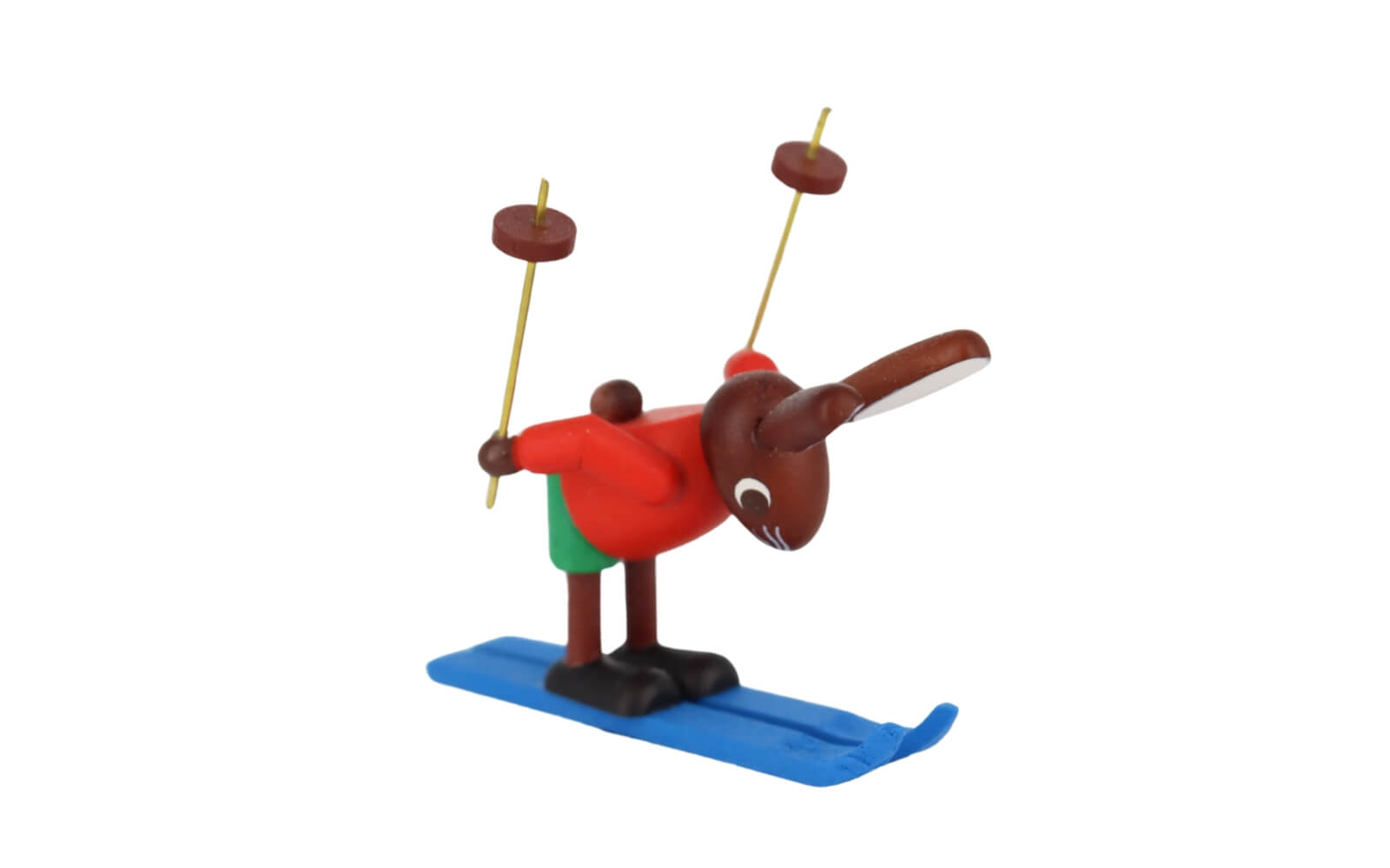 Each figurine is made with great attention to detail from local woods such as maple, Beech, alder, ash, spruce, lime or pine.T he Easter Bunny Downhill Runner is carefully hand-painted, which makes it a unique work of art. The use of natural materials and the artful craftsmanship guarantee the highest quality and make this Easter bunny a real collector's item.