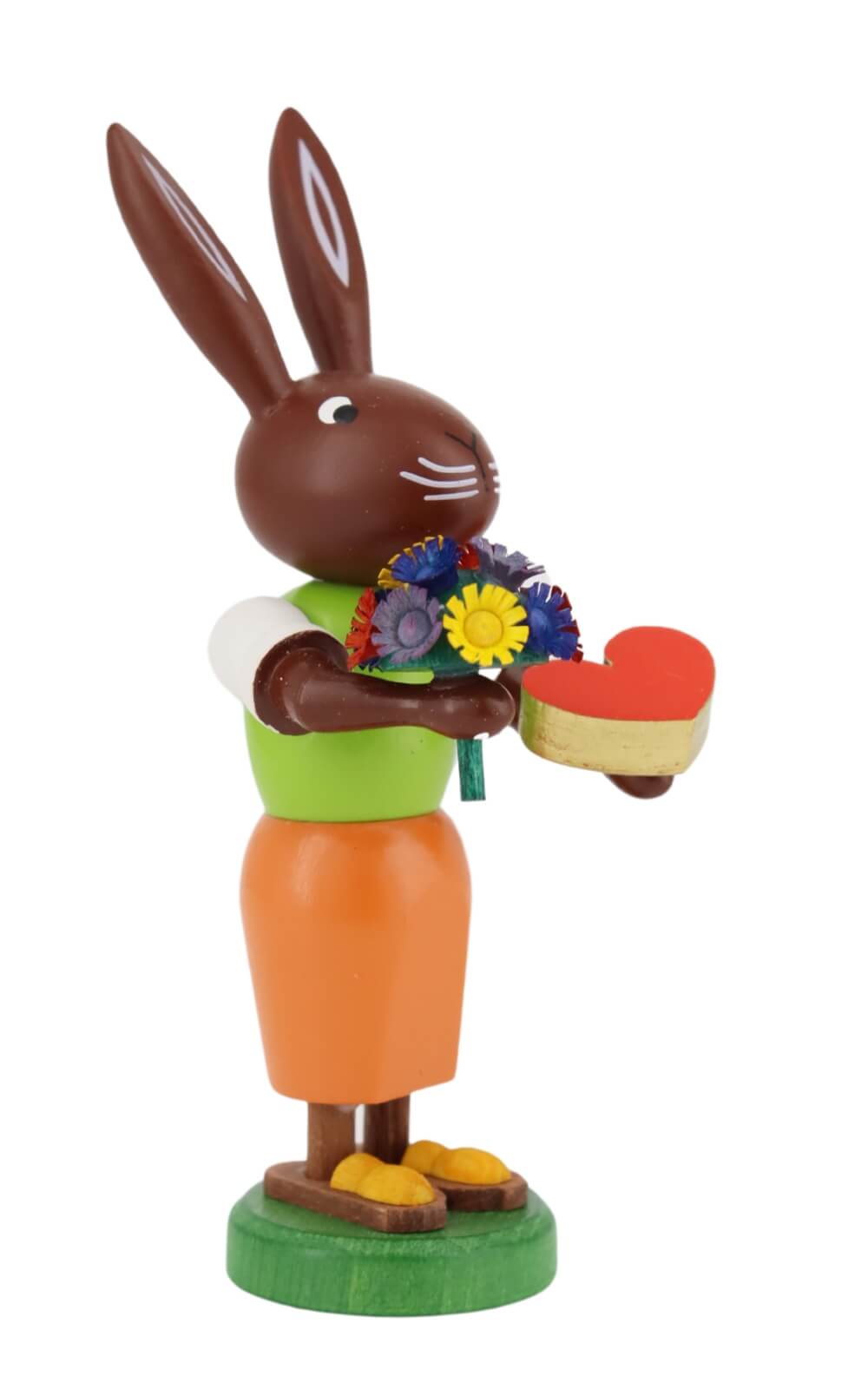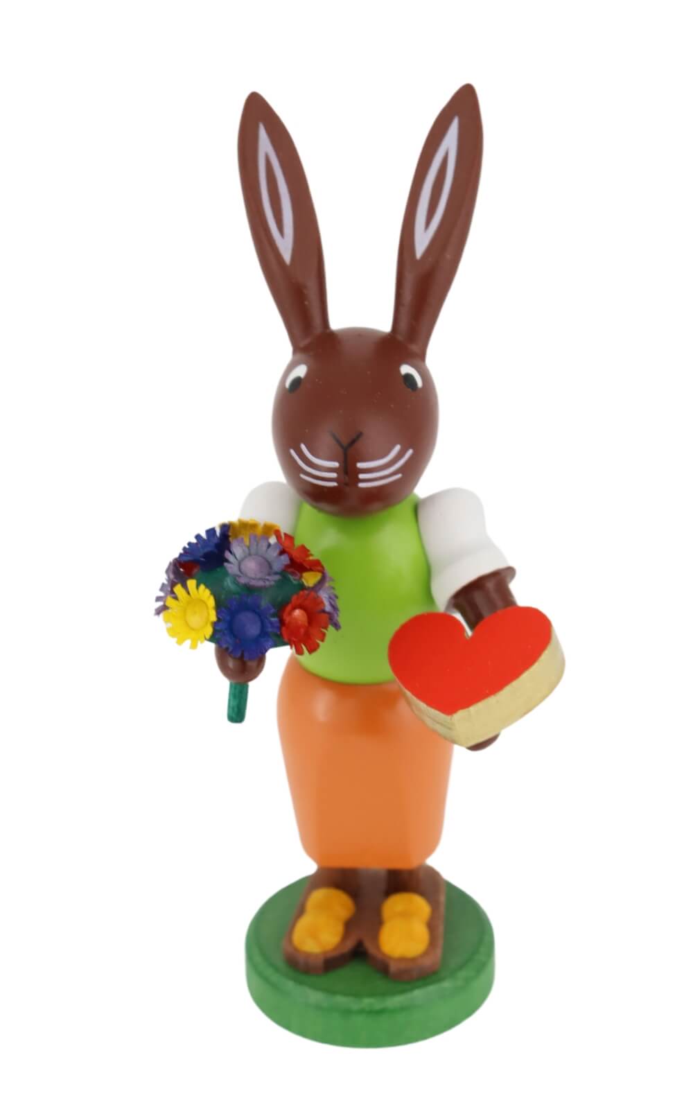 The Easter bunnies by the "Thomas Preißler - bunnies" are made in the picturesque spa town of Seiffen in the Ore Mountains. This region is known for its rich tradition in wood art. The "Easter bunny in love" is made from local woods such as maple, beech, alder, ash, spruce, lime and pine and is of the highest quality. Each bunny is an original "Thomas Preißler", hand-painted and carefully handcrafted. "Made in Germany" not only stands for the place of manufacture, but also for a guarantee of quality and attention to detail.