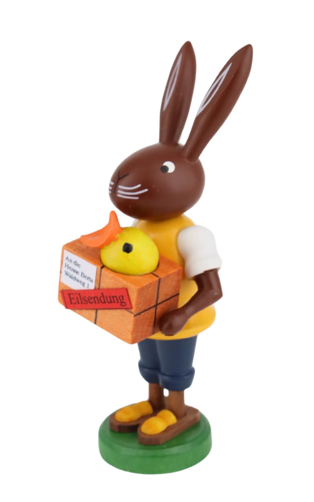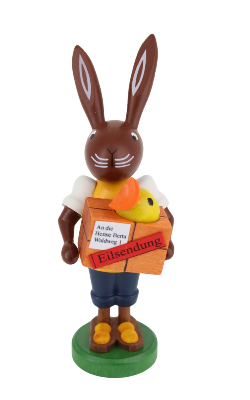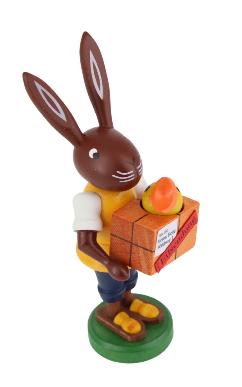 In the world of Easter decorations, Thomas Preißler's Easter bunny as a letter carrier is in a class of its own. It combines Erzgebirge craftsmanship with a touch of humor and originality. This work of art is not only an enrichment for every Easter decoration, but also a testimony to the craftsmanship excellence and creative passion, who are at home in the heart of the Erzgebirge. Let yourself be enchanted by this unique Easter bunny and bring a piece of Erzgebirge tradition into your home.