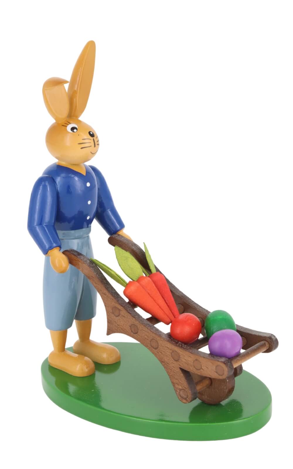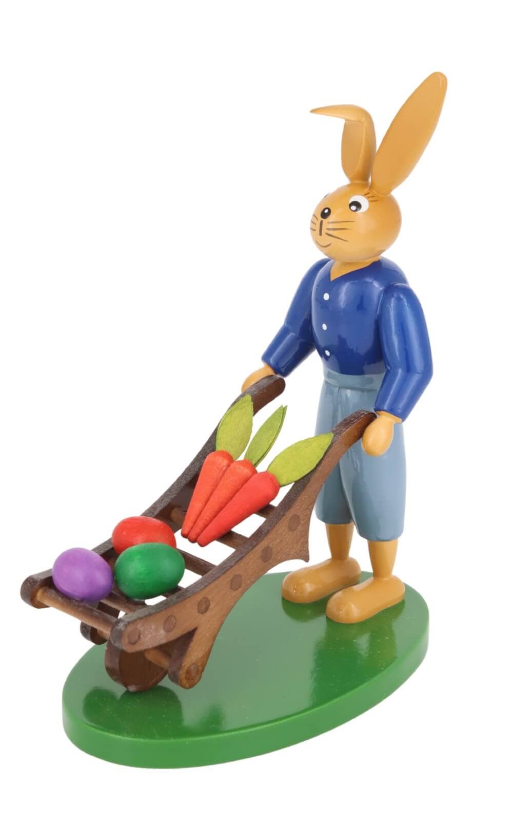 The Easter bunny with cart from Holzkunst Gahlenz is not only a piece of wood art, but also a piece of home. With its loving design and high-quality workmanship, it is the perfect gift or the ideal addition to your own Easter decorations. Handmade in the Erzgebirge, this figure brings a long tradition and craftsmanship into your home.