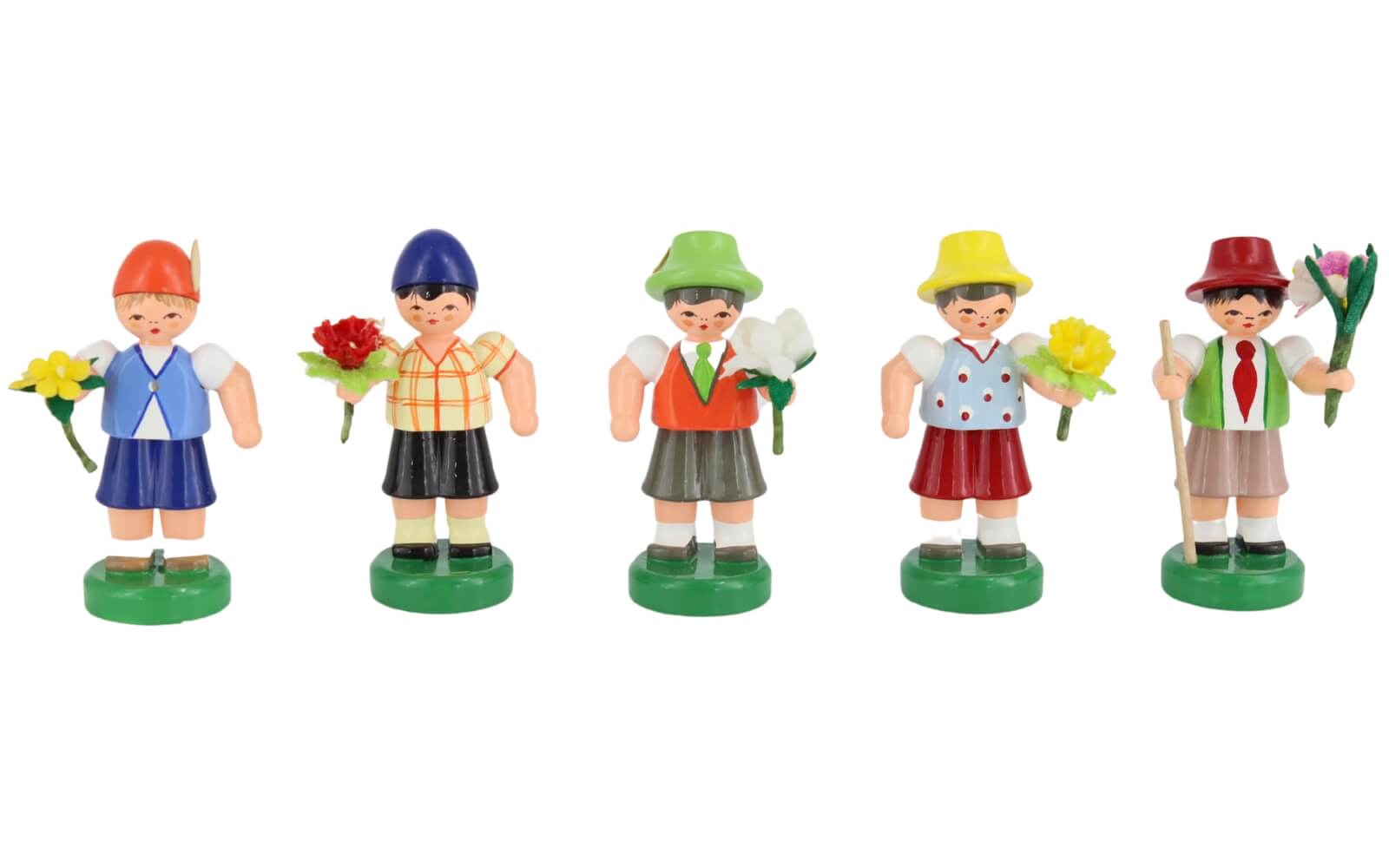Miniature flower boys, 5 pieces hand-painted, 7cm from Figurenland Uhlig GmbH from Seiffen in the Erzgebirge