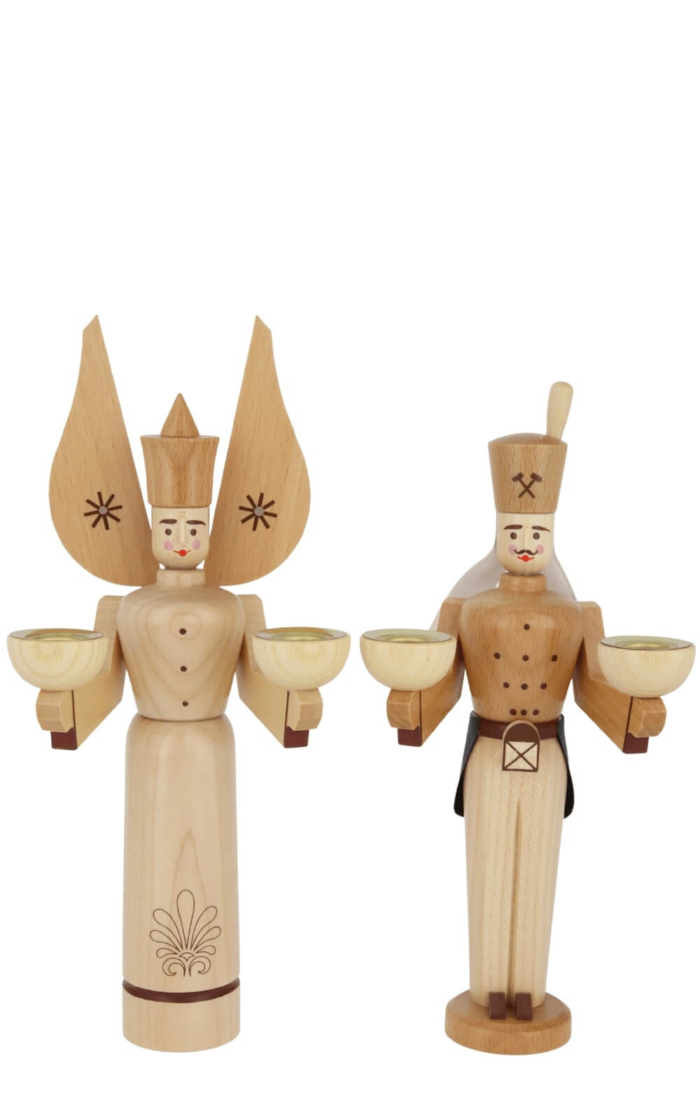 Mountain man and angel for wax candles, natural by Eckert Volkskunstwerkstatt from Deutschneudorf in the Ore Mountains