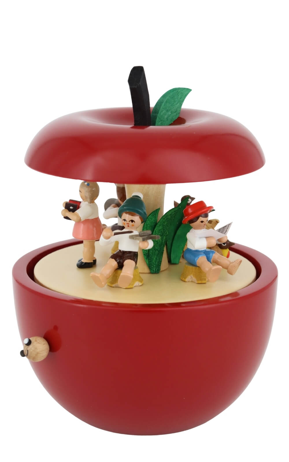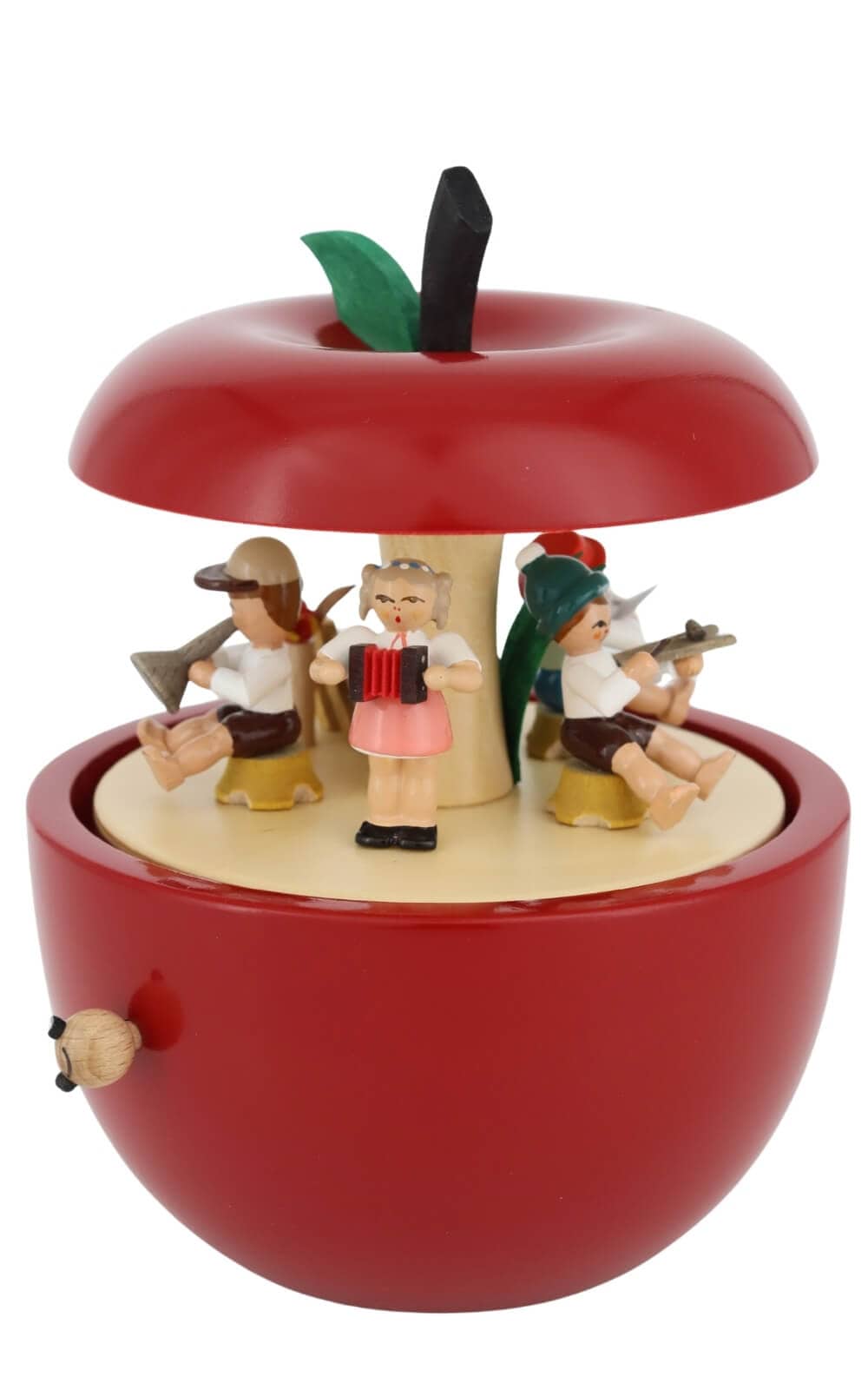 Music box apple children's concert, 15 cm / 5.91 in, colored by Richard Glässer GmbH