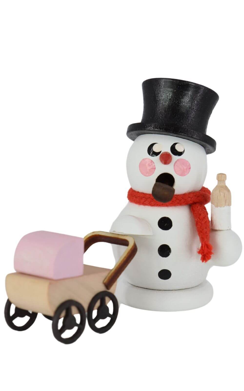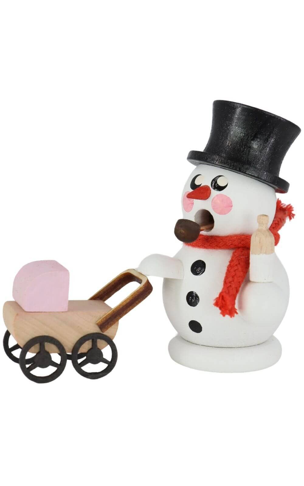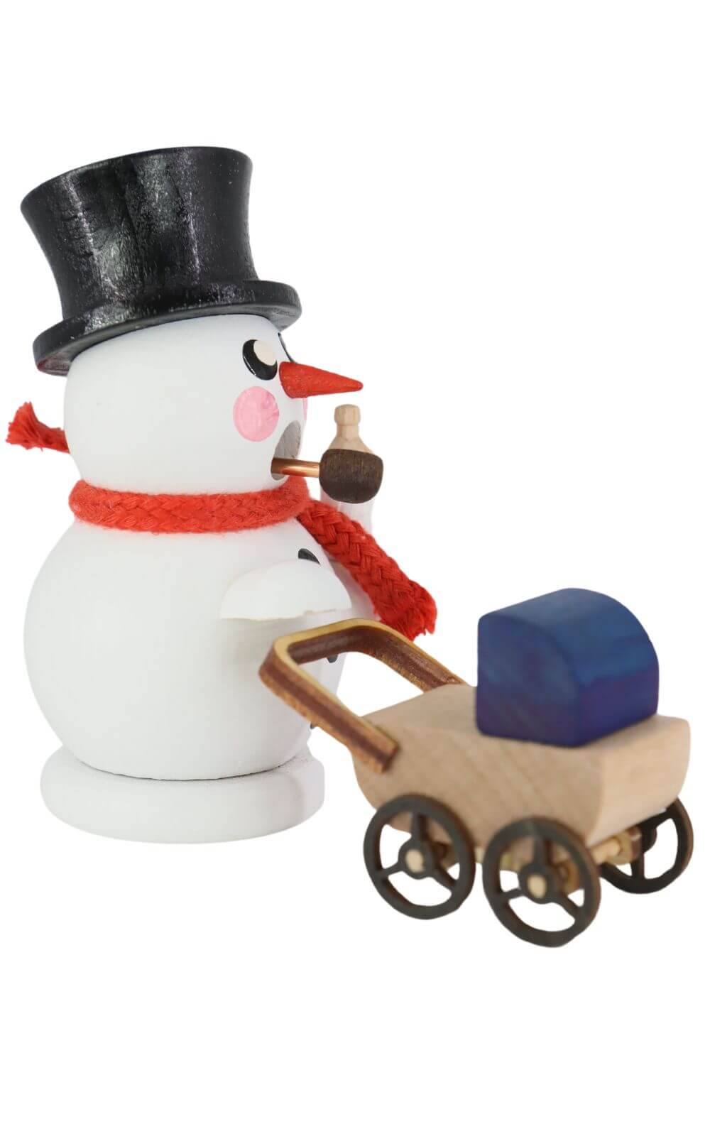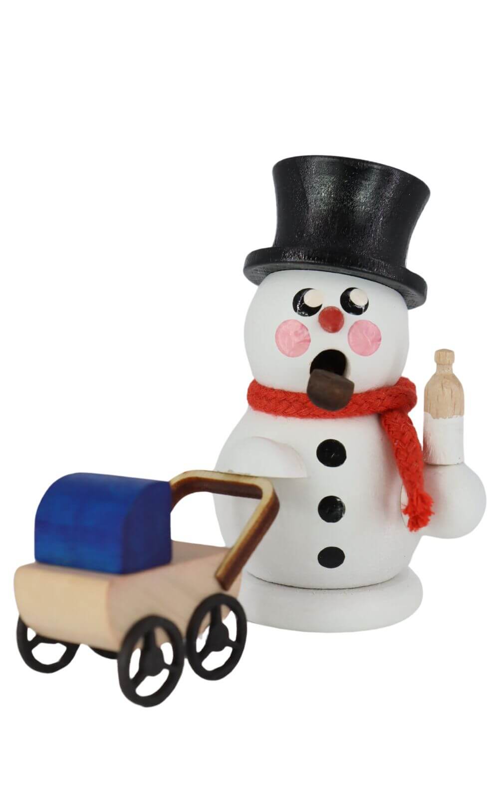 Smoking man snowman proud dad in white by Gerd Hofmann from Seiffen in the Erzgebirge: A joy for winter lovers