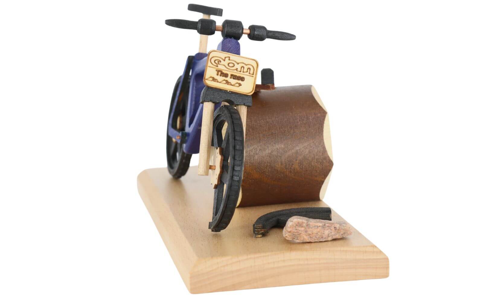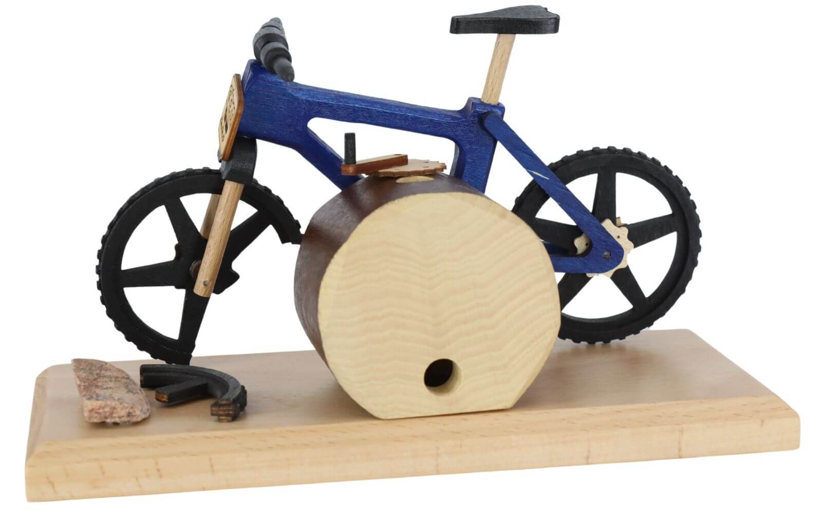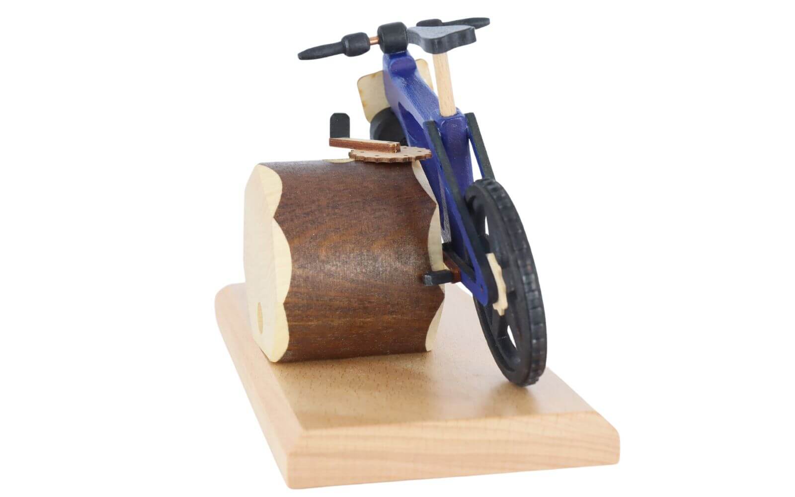 The "Crashbike" incense bicycle by Gerd Hofmann embodies the traditional quality and craftsmanship that the Erzgebirge region is known for. With the use of high-quality local woods and meticulous handcrafting, each figure is unique. Its original look and high-quality finish make the "Crashbike" a lasting decorative element and a valuable collectible from the heart of the Erzgebirge.