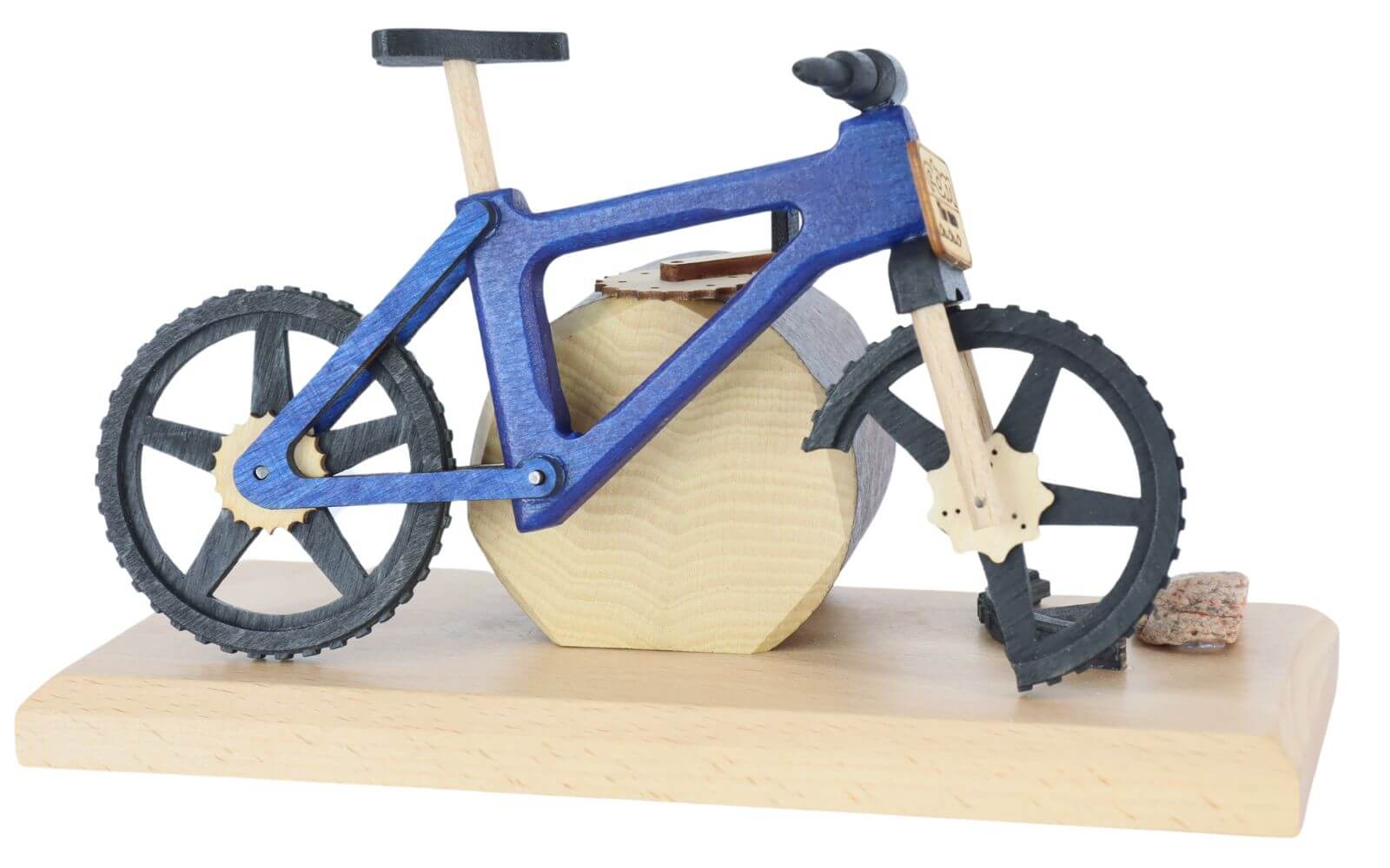 The "Crashbike" incense burner in blue by Gerd Hofmann from Seiffen in the Erzgebirge is an exceptional piece of traditional craftsmanship, blending modern design with traditional charm. This unique figure not only adds an original touch to your decor but also creates a cozy atmosphere through the use of incense cones.