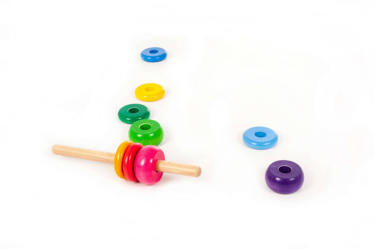 "Da hindurch 2018" aims to, improve children's fine motor skills and eye-hand coordination. By sliding the colored discs along a rounded stick, the sensomotor skills are trained in a playful way. Children learn, to perform precise movements and develop patience and concentration. Especially in a group, the game can be enjoyed by up to six children at the same time and thus promotes joint play and social interaction.