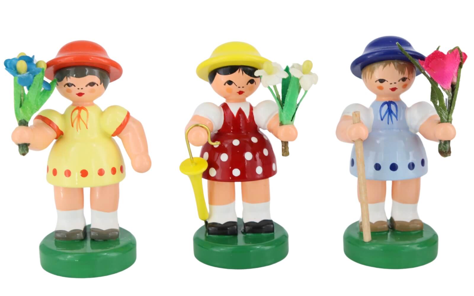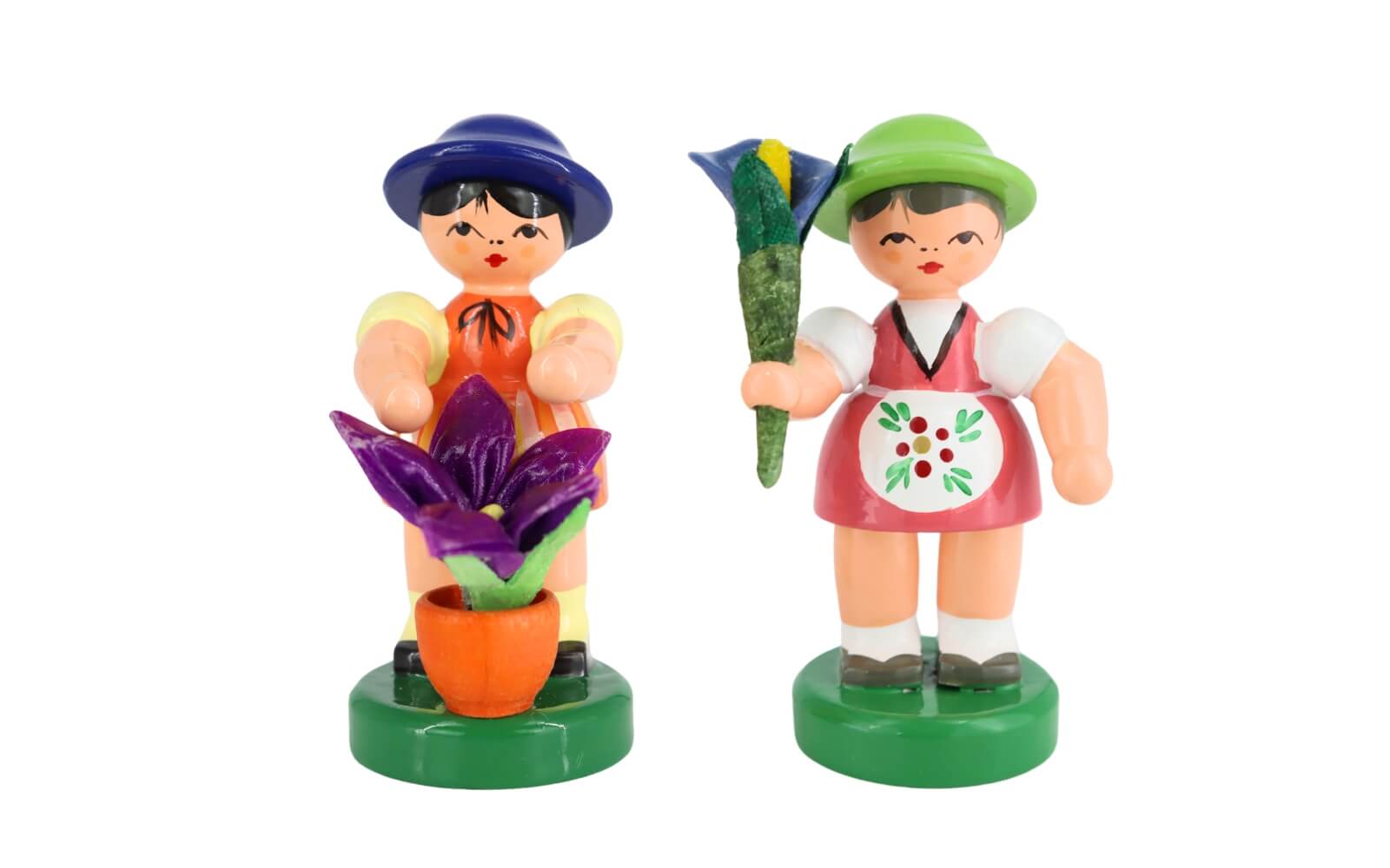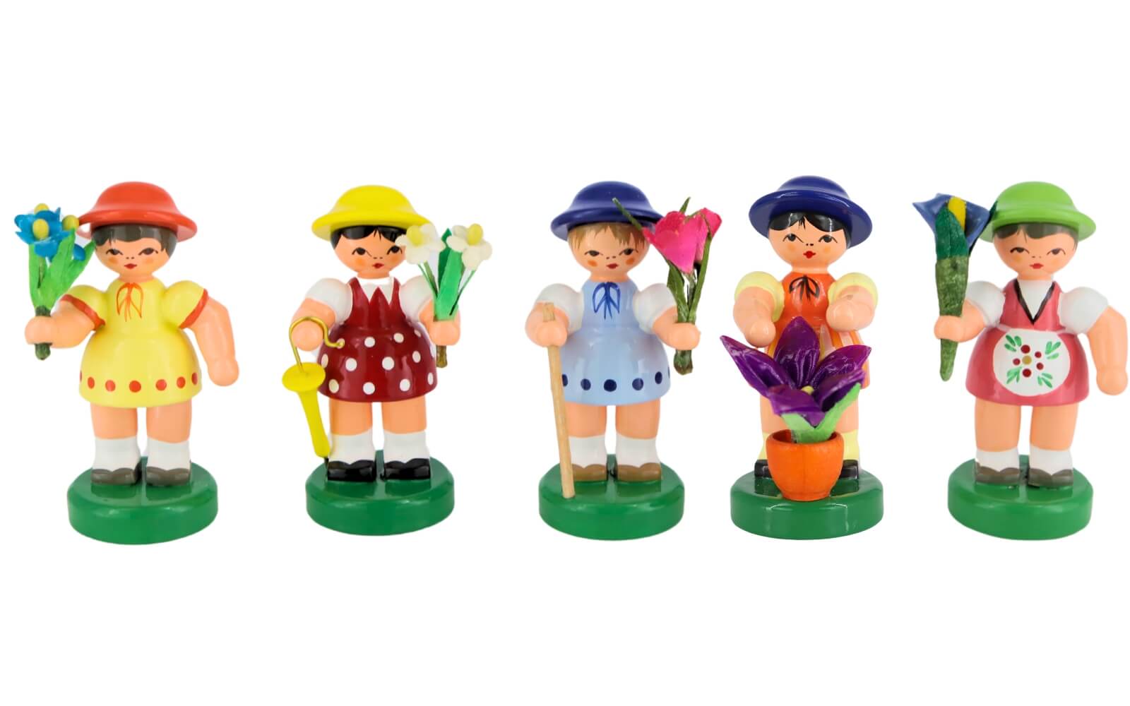 Miniaturen Blumenmädchen, 5 Stück handbemalt von Figurenland Uhlig GmbH aus Seiffen im Erzgebirge