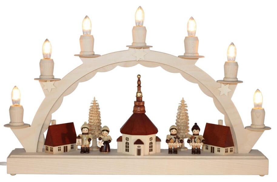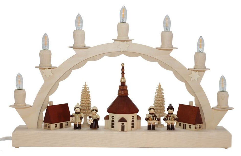 LED Schwibbogen kleines Seiffener Dorf mit Thiel Kinder von SEIFFEN.COM