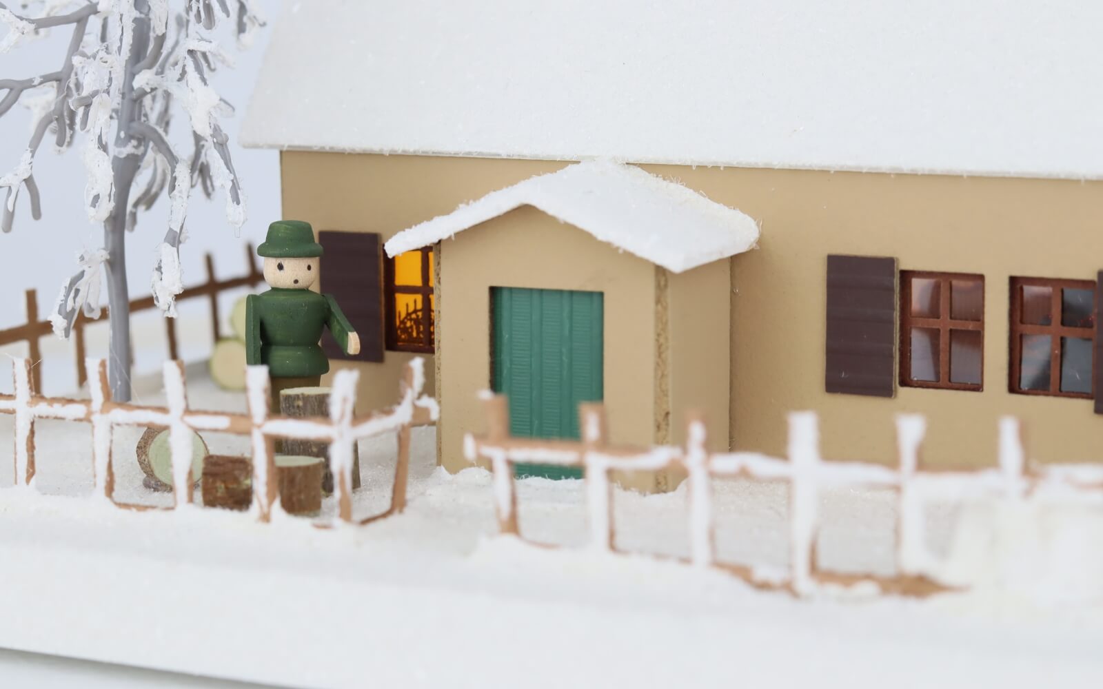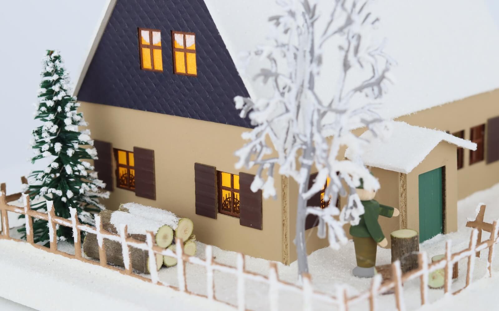 Stimmungsvolle Weihnachtsdekoration mit dem Lichterhaus Erzgebirgshaus mit Weihnachtsstube