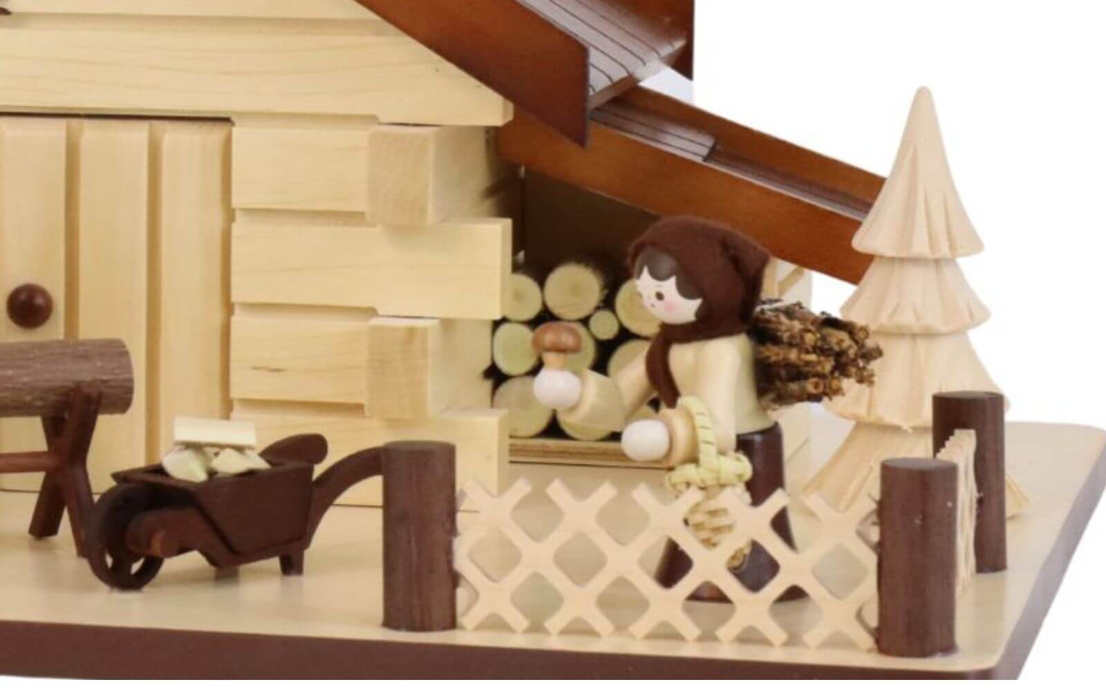 Das Design des Waldhauses ist außergewöhnlich, denn es verbindet traditionelle Handwerkskunst mit modernen Elementen. Hergestellt aus heimischen Hölzern wie Ahorn, Buche, Erle, Esche, Fichte, Linde und Kiefer, verkörpert dieses Lichterhaus die Naturverbundenheit der Region. Jedes Stück ist ein Unikat und wird in aufwendiger Handarbeit gefertigt, was es zu einem besonderen Schmuckstück für den Innenbereich macht. Die Materialien stammen ausschließlich aus nachhaltigen Quellen und garantieren die hohe Qualität, für die Romy Thiel und die erzgebirgische Handwerkskunst bekannt sind.