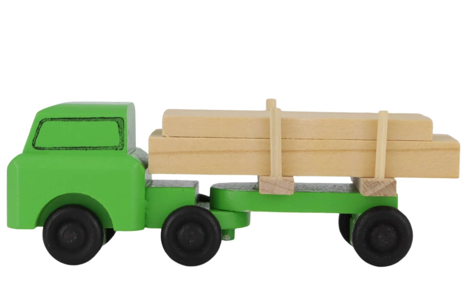 Holzspielzeug LKW mit Schnittholz, farbig, 8 cm von Robbi Weber aus Seiffen im Erzgebirge