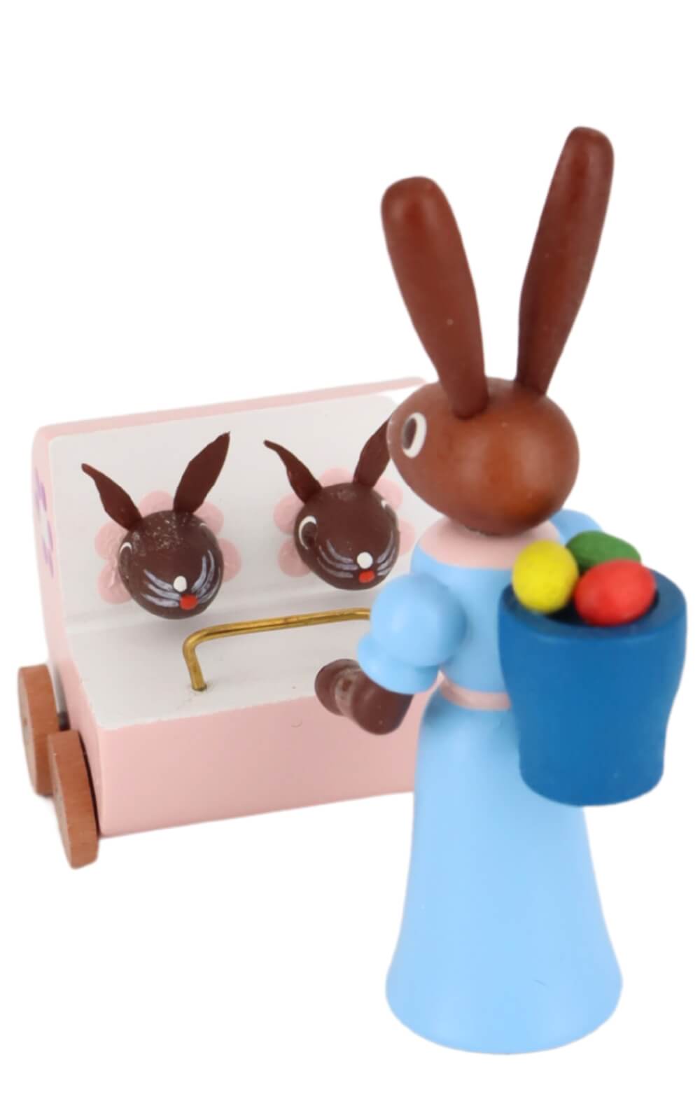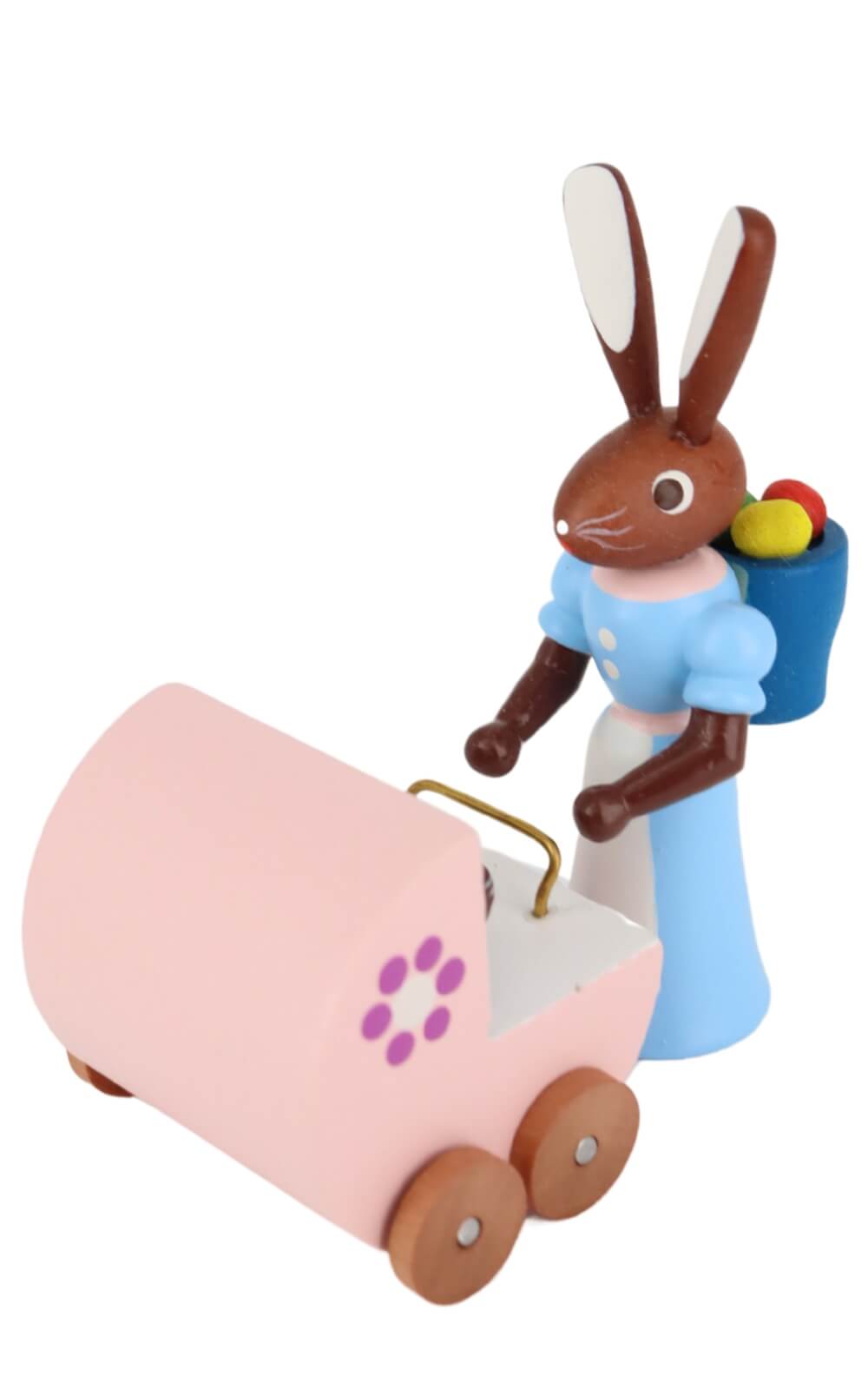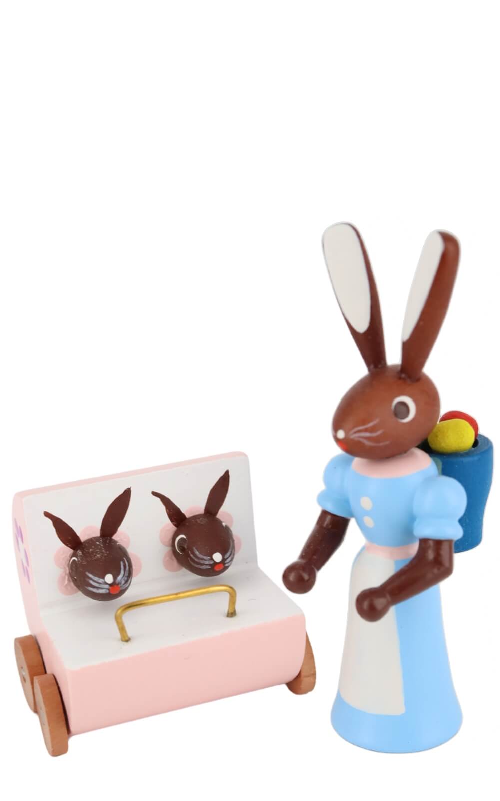 Osterhase Mutter mit Zwillingswagen, 6 cm, farbig von Stephan Kaden aus Seiffen im Erzgebirge