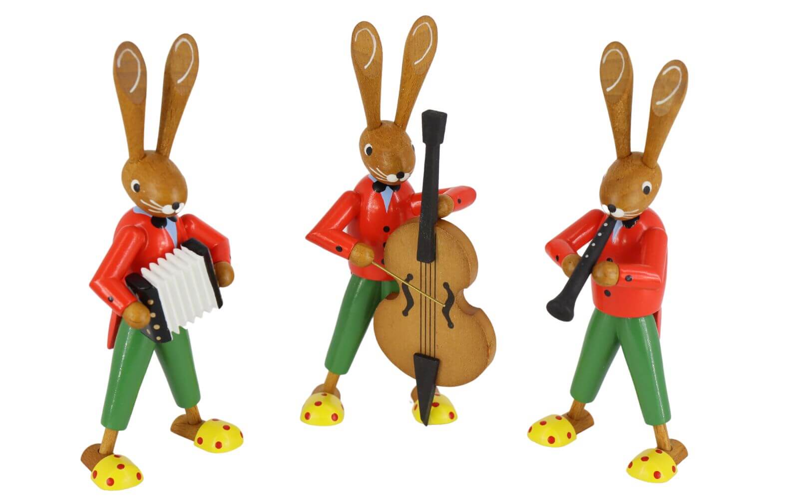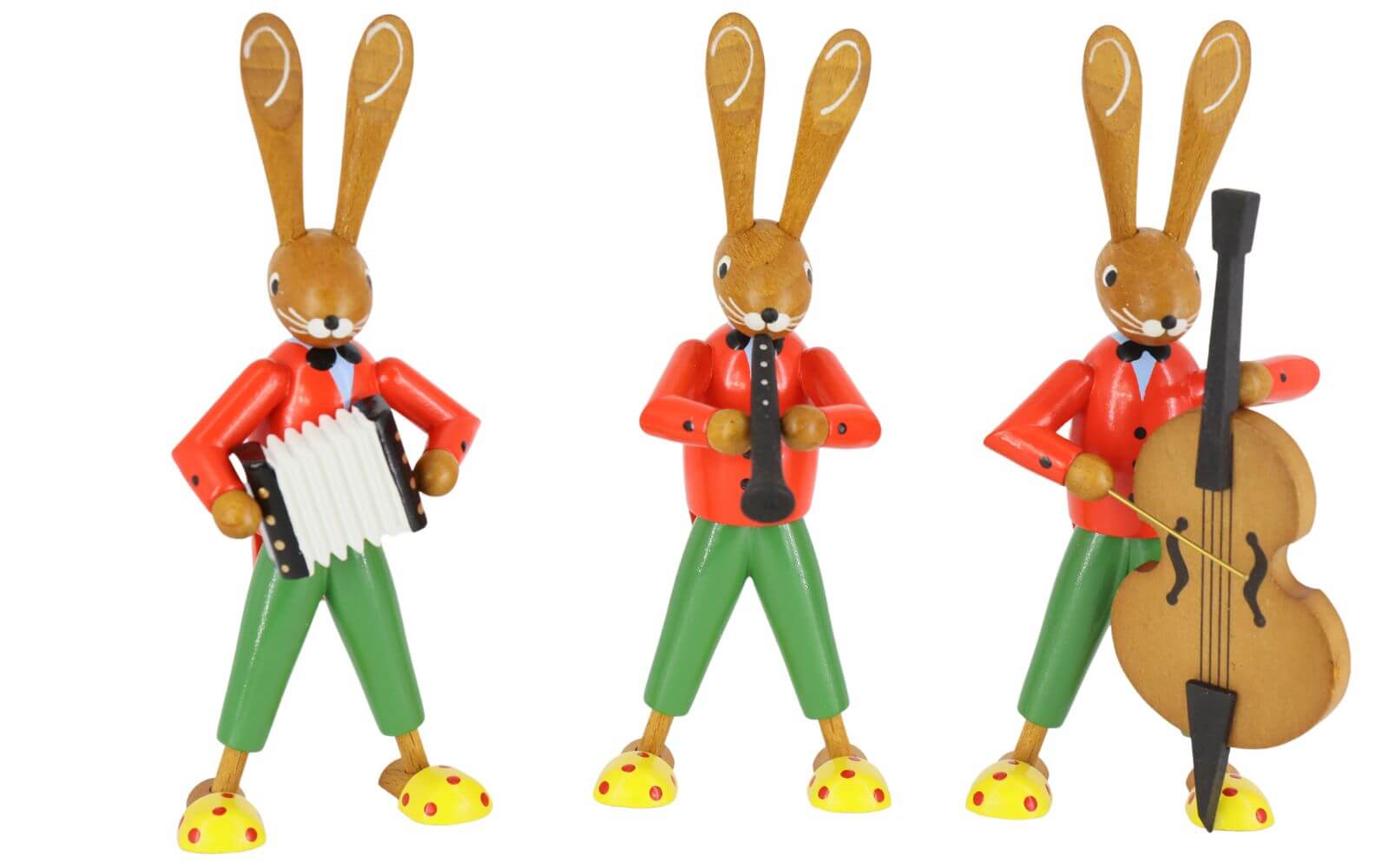 Osterhasen - Trio Streicher, 12 cm, farbig von Ralf Zenker aus Seiffen im Erzgebirge