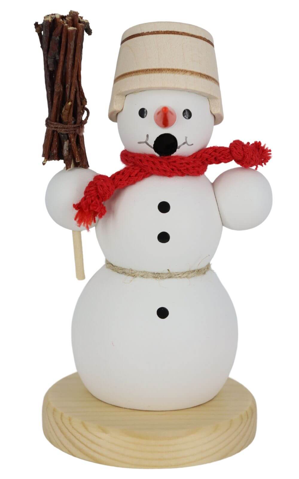 Räuchermännchen Schneemann mit Besen, 13 cm, farbig von Ralf Zenker aus Seiffen im Erzgebirge