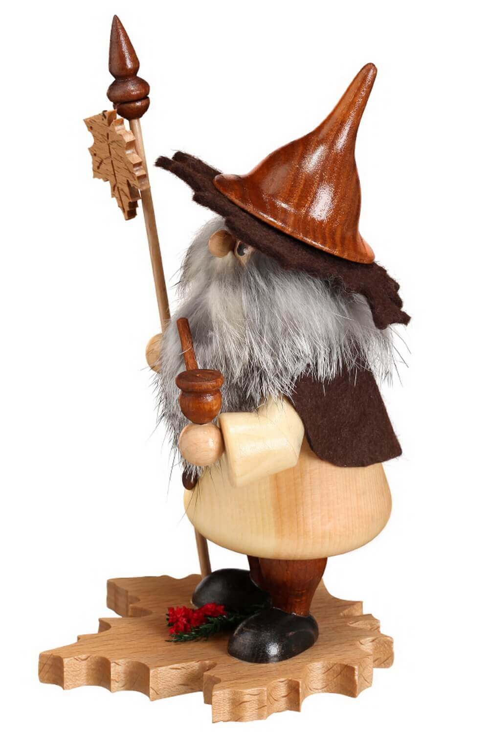 Räuchermännchen Wichtel mit Ahornblatt, 18 cm von DWU Drechselwerkstatt Uhlig