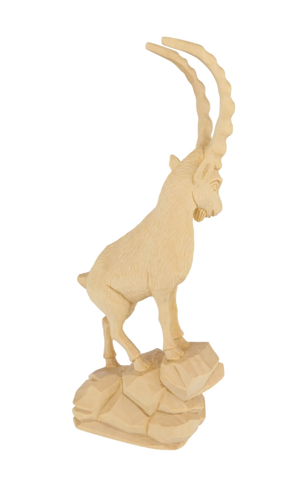 Steinbock geschnitzt, natur, 25 cm von Schnitzkunst aus dem Erzgebirge als Symbol für Stärke und Tradition
