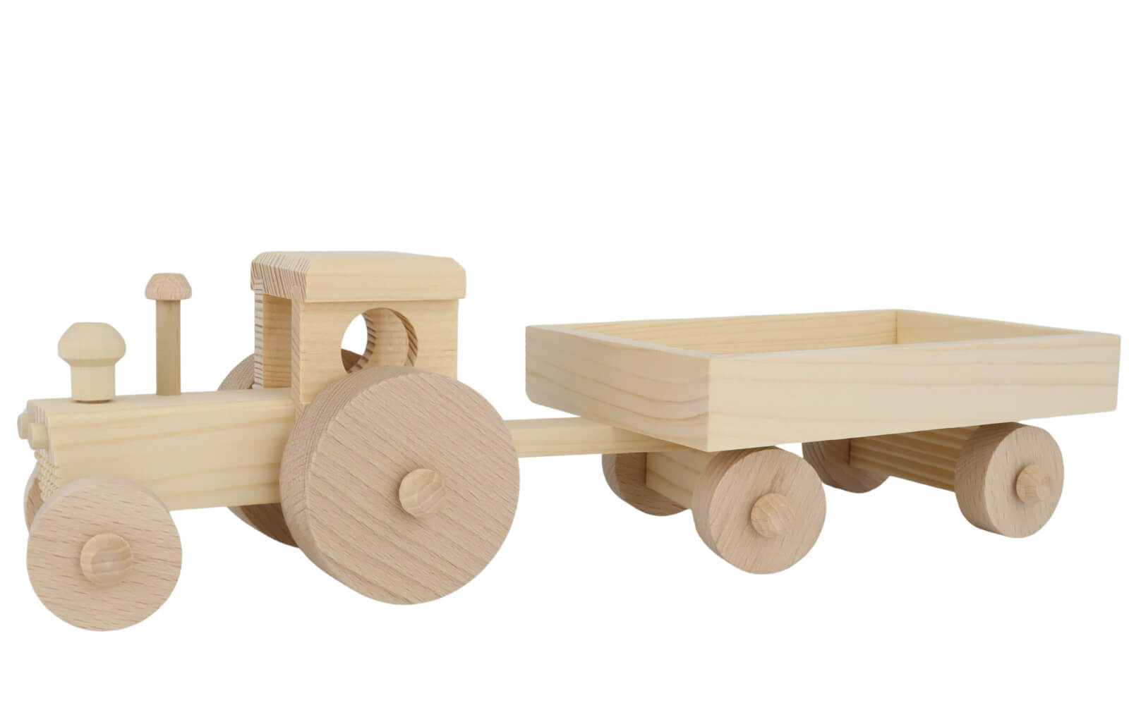Der naturbelassene Holztraktor mit Anhänger von Robbi Weber: Perfekt für kleine Kinderhände