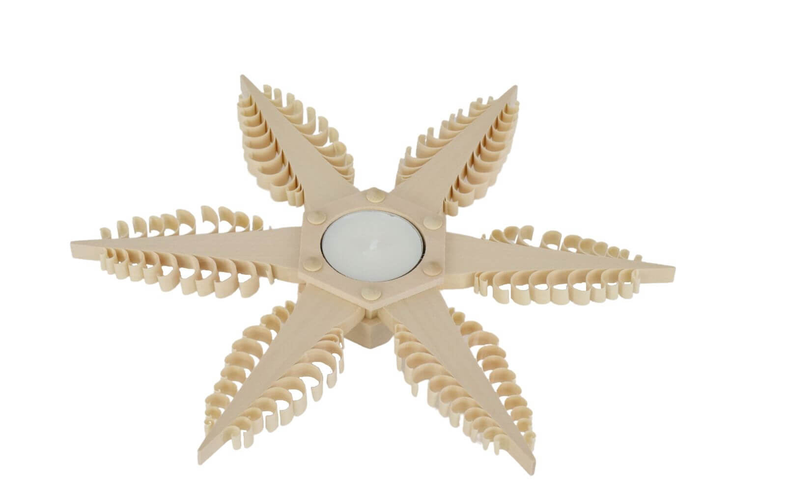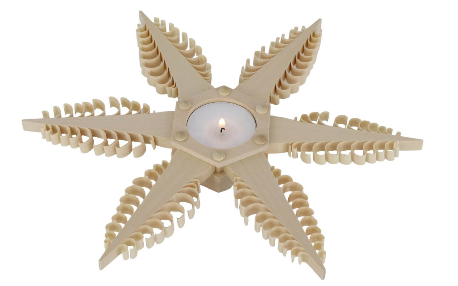 Eleganter Weihnachtskerzenhalter Spanbaumstern von Martina Rudolph aus Seiffen im Erzgebirge