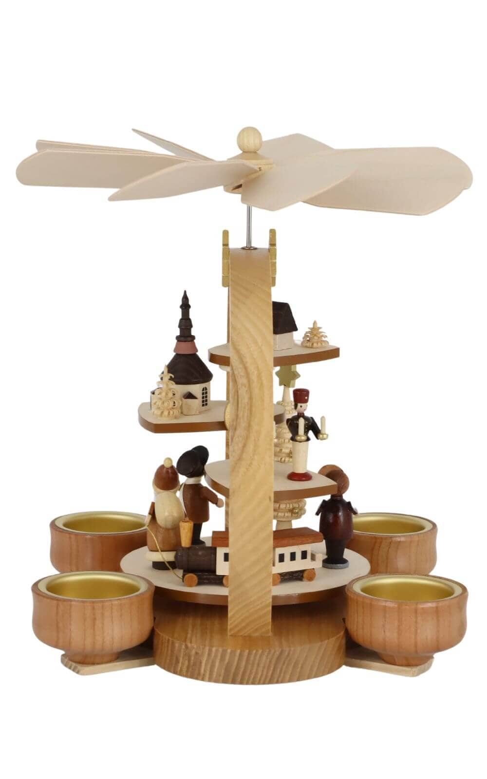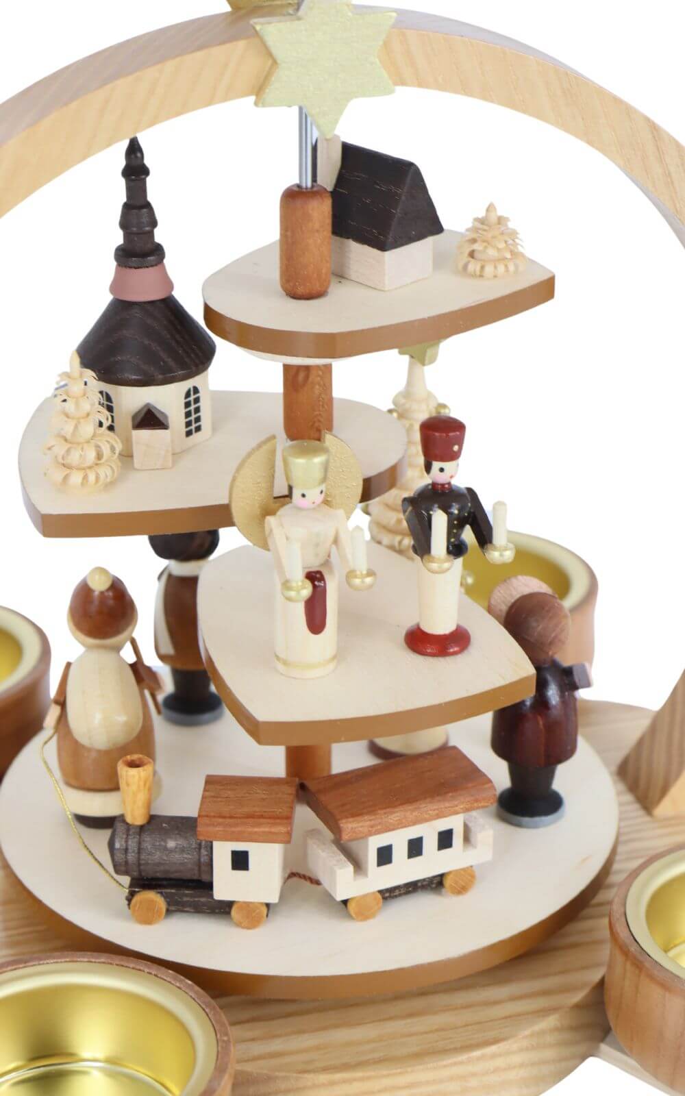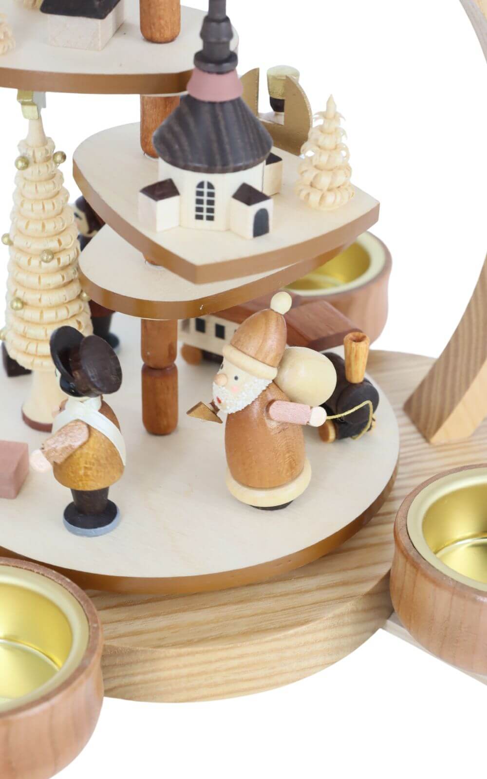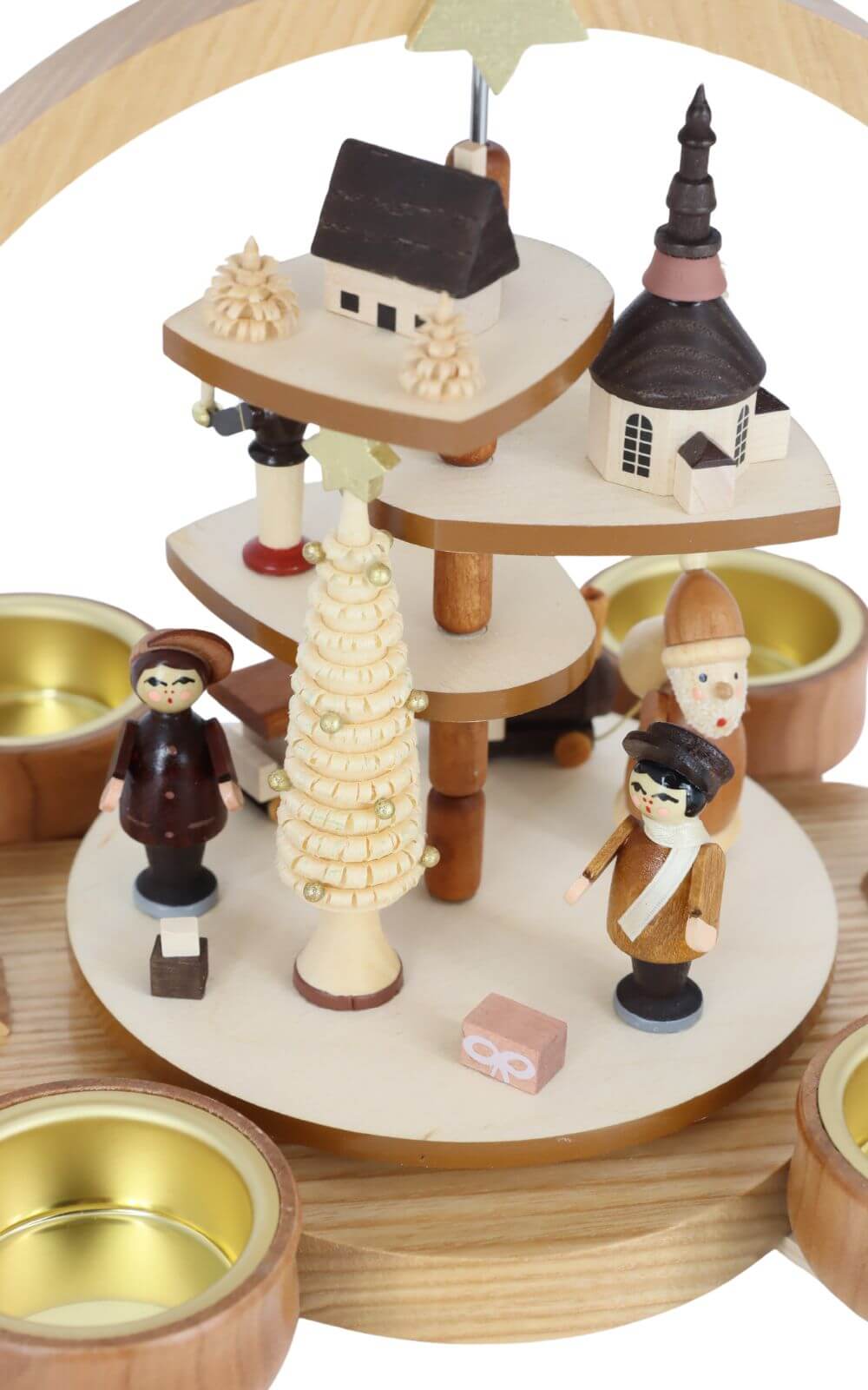 Weihnachtspyramide mit Seiffener Motiv für Teelichte, 22 cm, natur von Knuth Neuber aus Seiffen im Erzgebirge