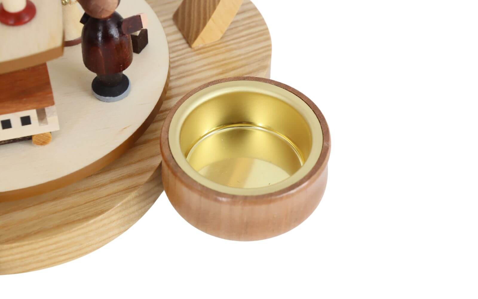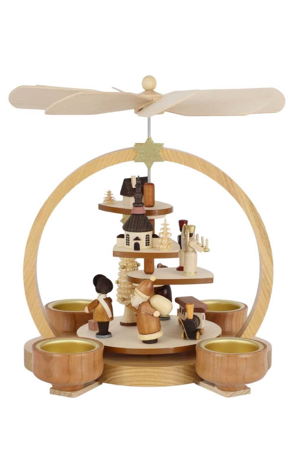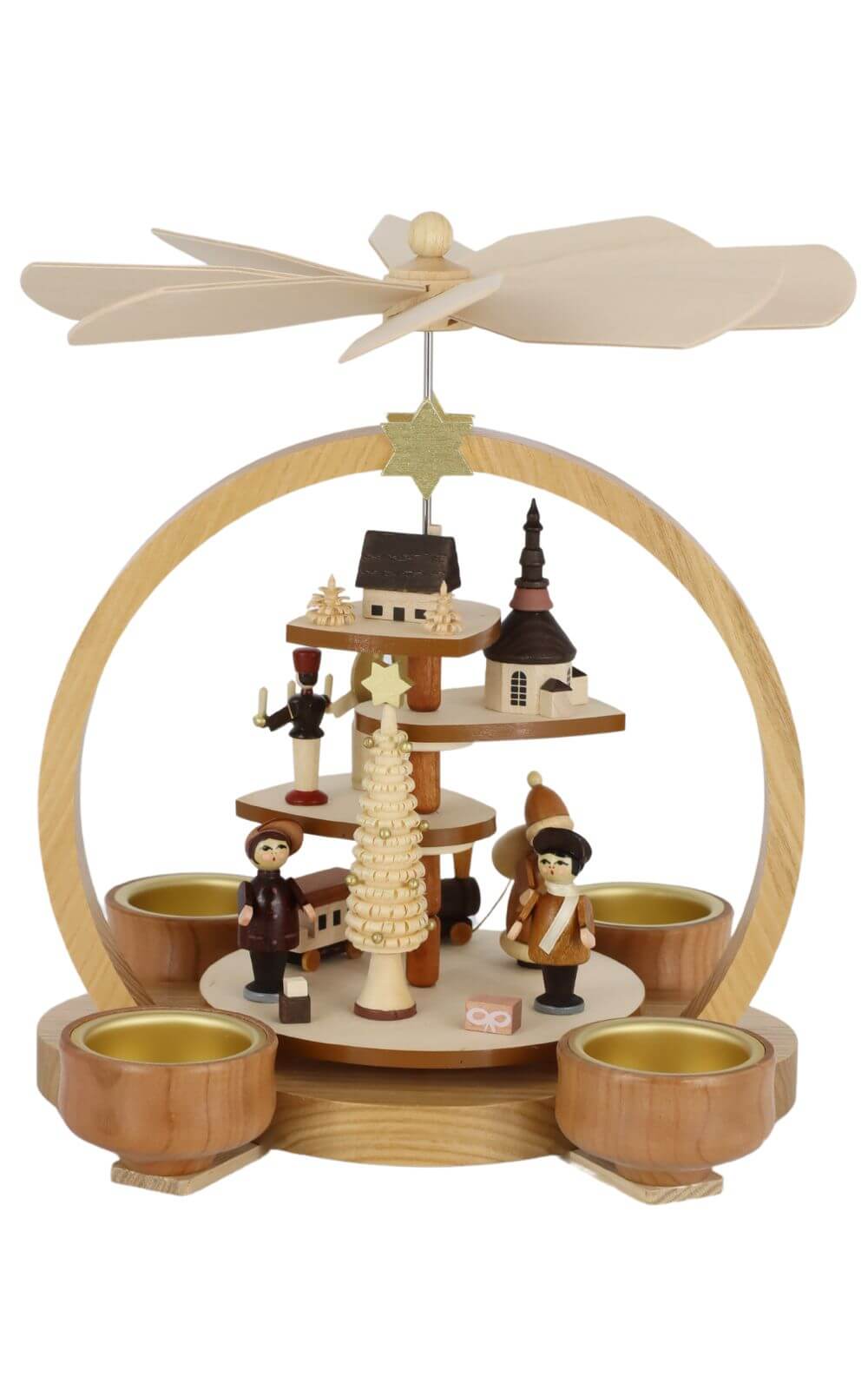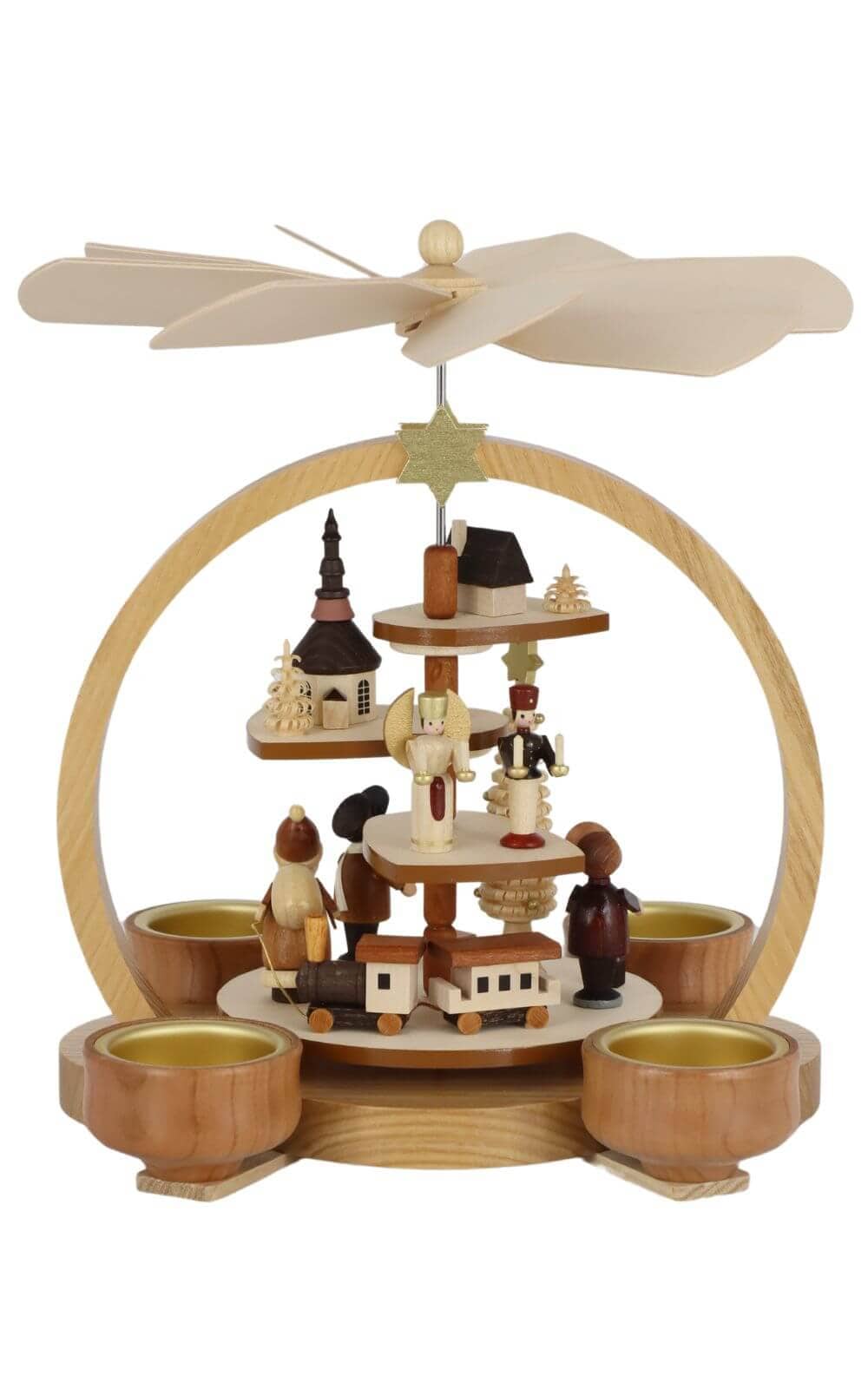 Weihnachtspyramide mit Seiffener Motiv für Teelichte, 22 cm, natur von Knuth Neuber aus Seiffen im Erzgebirge
