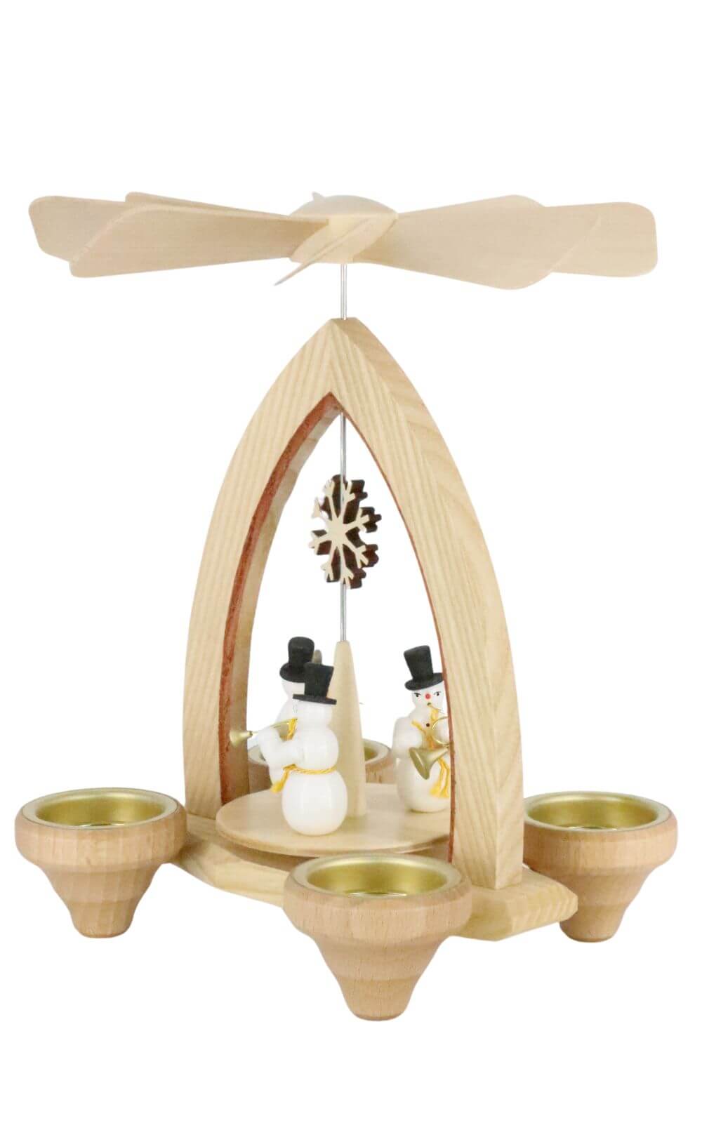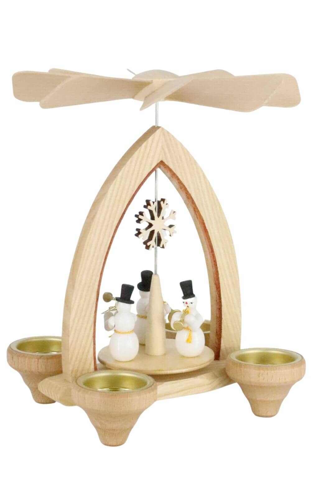Weihnachtspyramide mit Schneemann Musiker für Teelichte, 24 cm von Heinz Lorenz