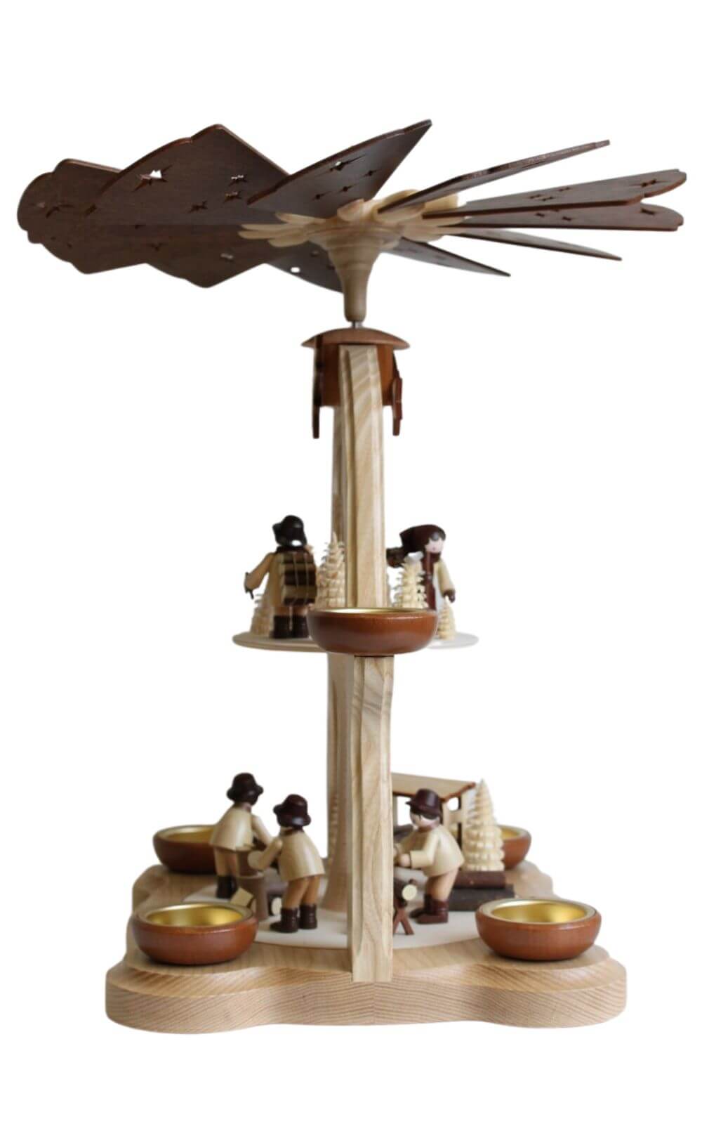 Weihnachtspyramide Waldarbeiter für Teelichter, 2-stöckig in natur, 40 cm hoch, Legler Holz- und Drechslerwaren aus Olbernhau im Erzgebirge